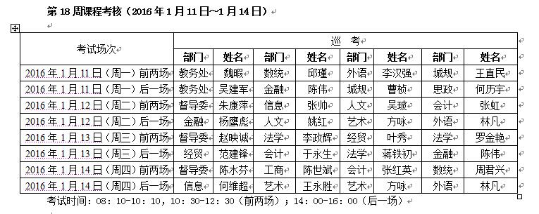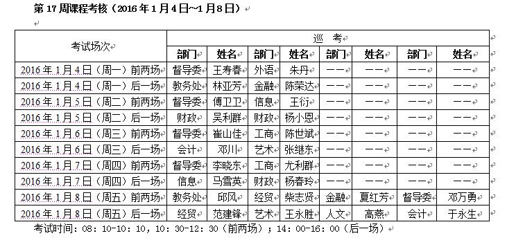 3、巡考人员若有变动,请提早一天告知教务处考试管理办,联系电话:87557061。