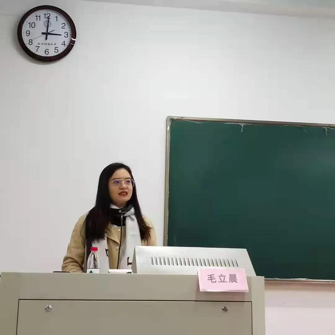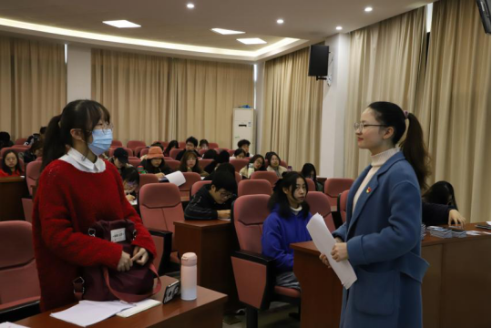 随后由毛立晨老师带来了“浅谈校园文化与学生综合素质培养”的分享。“欲知明日之社会,需看今日之校园”,她强调:学校在教育教学质量保证的情况下校园文化活动的开展也非常重要,学生在学业之余要积极参加校园活动,充分的锻炼自己。随后,她结合自己在校的经历,讲述学生干部的发展路径,并分享学生干部的生存之道,作为学生干部需“善战者求之于势,不责于人”。最后通过播放“没有伞的人生,必须要努力奔跑”考试动员视频,勉励同学们,人生是一场马拉动,大家的起跑线可能不一样,但是只要你努力奔跑,定会收获想要的人生,希望同学们好好规划和把握大学四年。