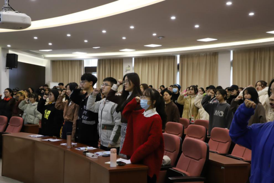 在团课的最后,组织部负责人陈心珺带领大家,重温了入团誓词,让大家再次感受到了作为共青团员这份自豪感与使命感。