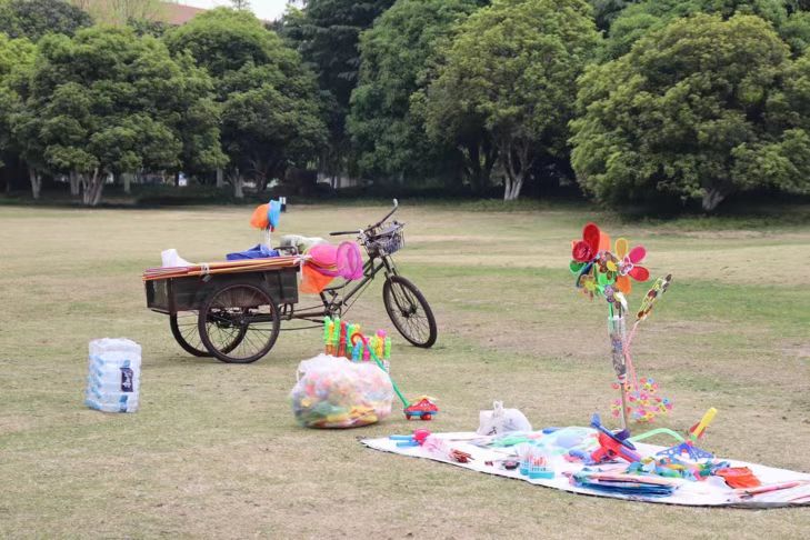 同学们在这相约在四月的森林主题公园