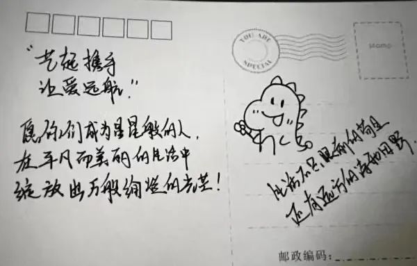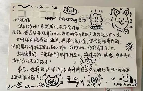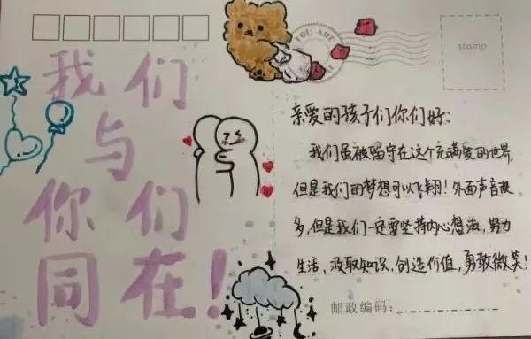 小小的善举,大大的温暖。见字如晤,艺术学院将代大家将明信片寄向远方,为初生的花朵送一线阳光。本次公益活动让同学们奉献了自己的一份爱心,感受了作为一名大学生的社会责任感,营造了我校关爱留守儿童的良好氛围,同时也感染着更多人加入到助力留守儿童的队伍当中。相信我们的心,一定能点亮留守儿童希望的灯,帮他们撑起一片蔚蓝的天空!感谢同学们的积极参与,尽情期待下一次的精彩活动!