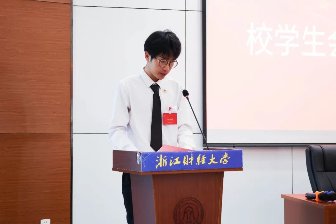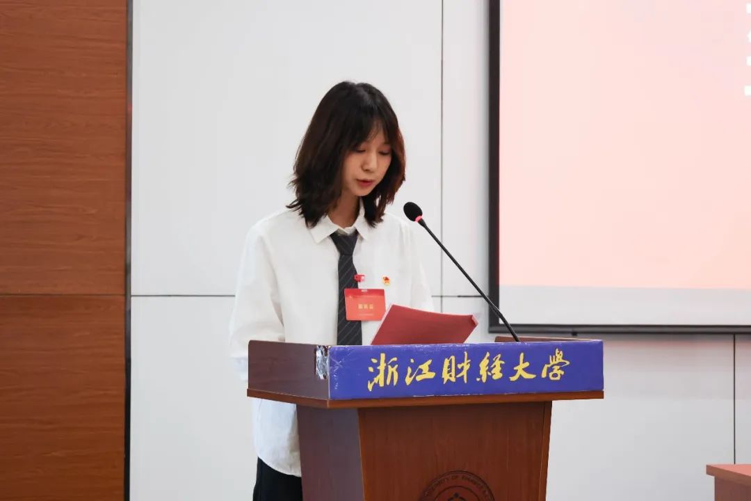 学院学生会执行主席周羽茜致闭幕辞,她提出各位代表要继承和发扬我院学生会组织的优良传统,脚踏实地,奋勇拼搏,团结带领全院同学成长为有理想、敢担当、能吃苦、肯奋斗的新时代好青年,在中国式现代化的伟大征程中,奋力书写绚丽多彩的青春答卷。