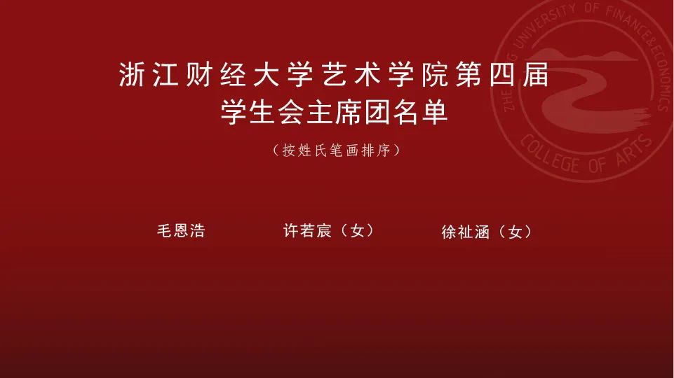 启程之时便有靠岸之日,庆幸遇见,接力棒至此交接。相信新一届学生会定能步履不停、恒守相伴,一起奔赴艺院新篇章。本次大会充分体现了我院良好的民主氛围,也为今后学生工作的开展打下了良好的基础。美好理想的践行,都不是唾手可得的,都需要筚路蓝缕、手胼足胝的艰苦奋斗。循大道方可至万里,愿我院学生会接下来的工作能够厚植沃土,萃就精华!