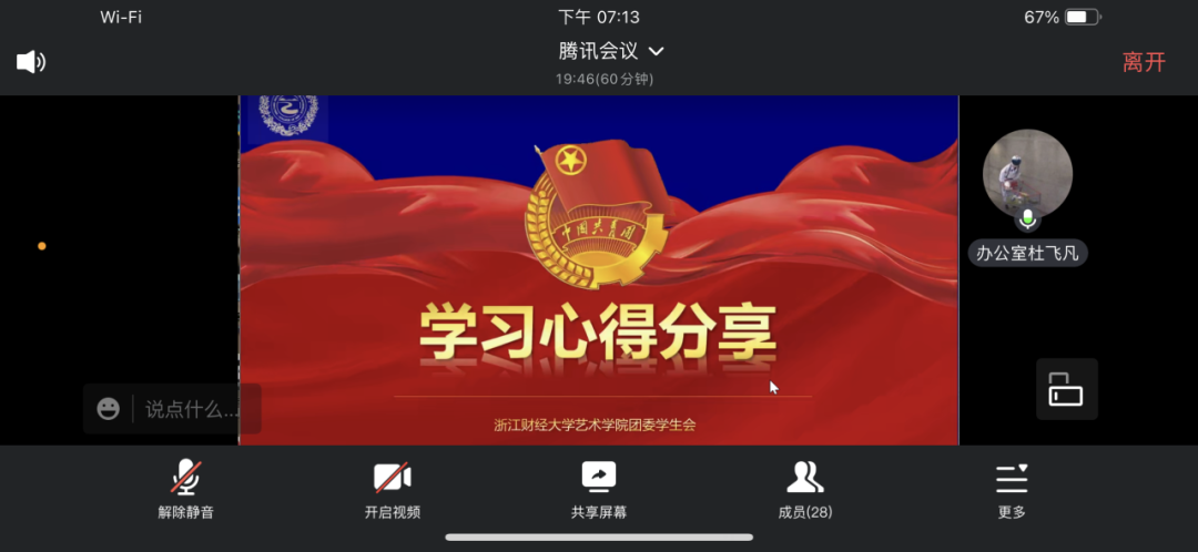 为深入学习宣传贯彻习近平总书记重要讲话精神,全面落实团十九大部署工作,牢牢把握思想内涵、精神要义和实践要求,7月14日,艺术学院团委学生会组织开展关于《习近平同团中央新一届领导班子成员集体谈话并发表重要讲话》理论学习会,团员青年、学生骨干通过线上腾讯会议的形式深入学习宣传贯彻习近平重要讲话精神,并结合自身实际情况分享了自己对于会议内容的见解和感悟,让我们一起听听他们的心得体会吧!