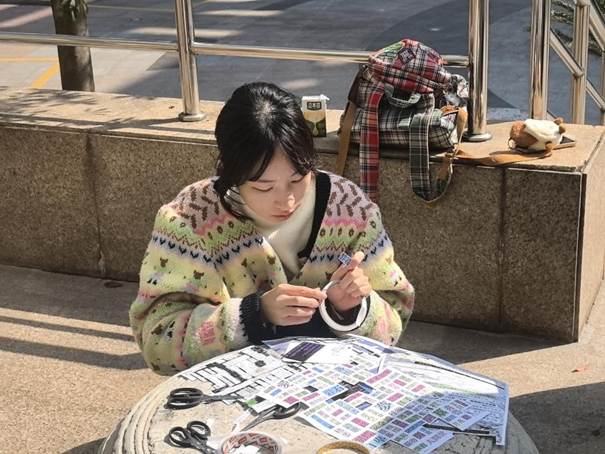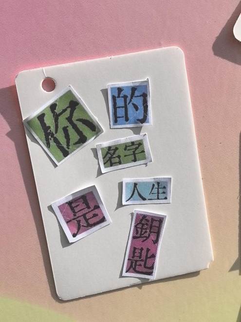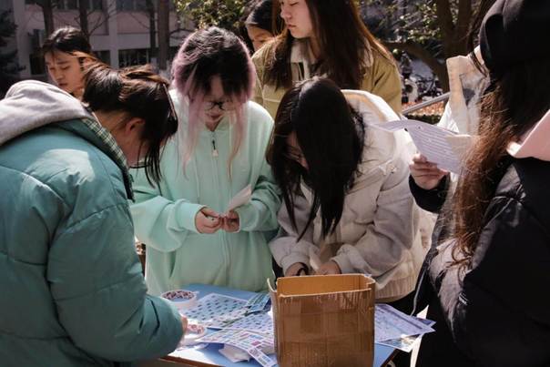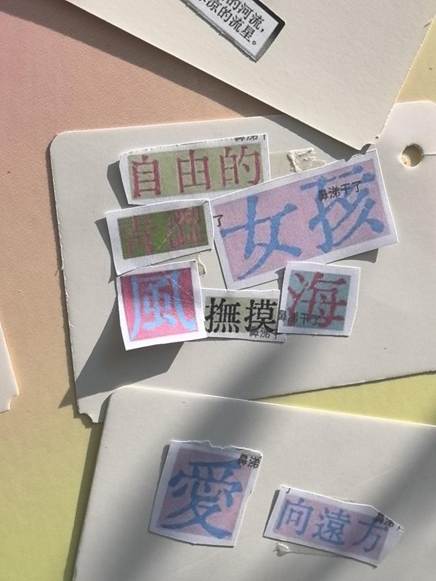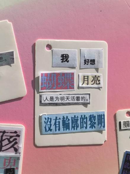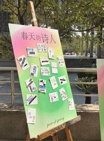 活动现场,工作人员们准备了一张张彩色的、春天的素材,同学们从中挑选自己想要的不同颜色或形式的文字,将它们编织成属于自己的春日诗篇。