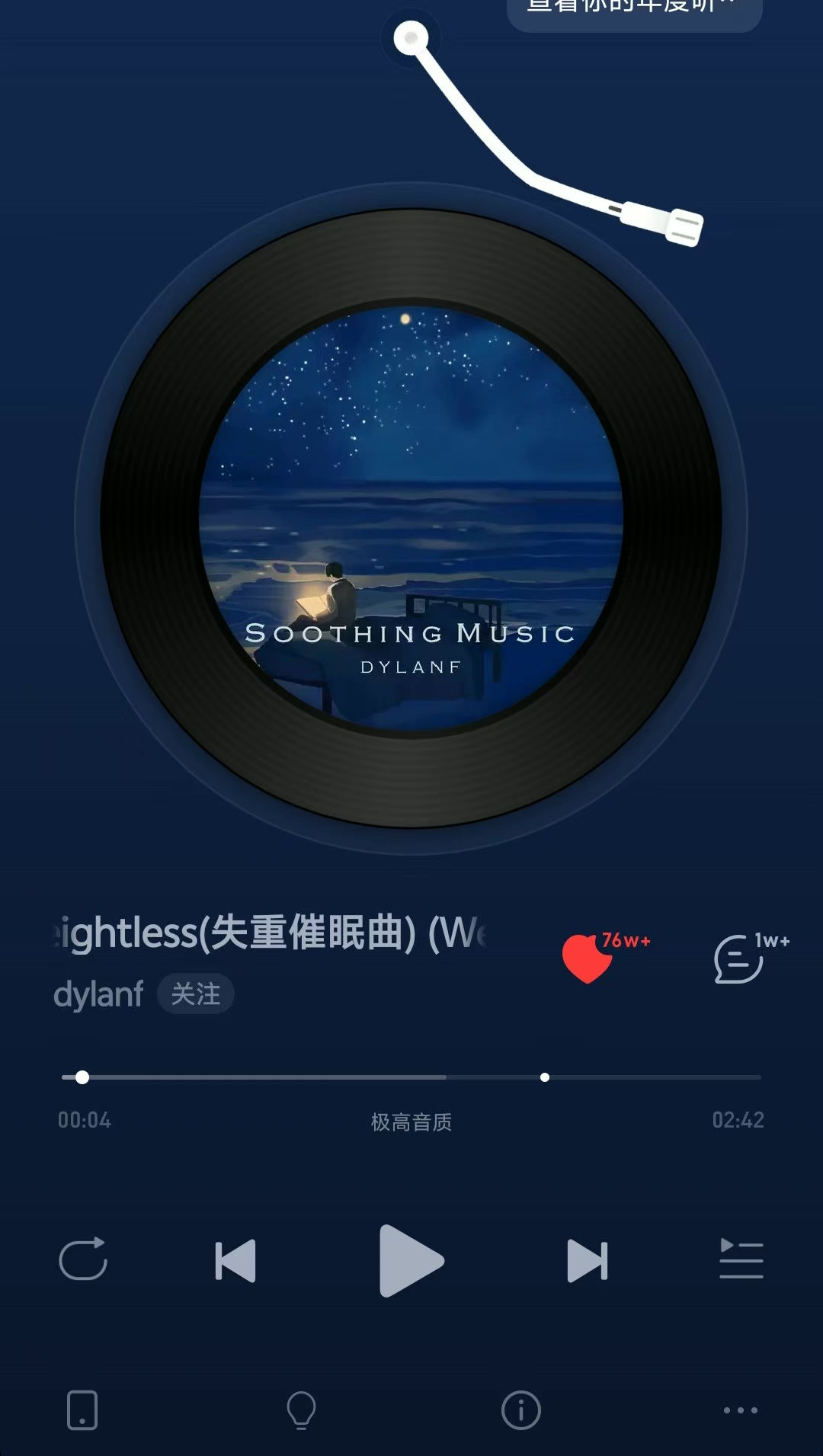 推荐理由: 这支由英国音乐家与神经科学家共同创作的曲子,被实验证明能降低65%的焦虑感,减缓心率,引导大脑进入深度放松状态。它没有明显的旋律线,而是用层层叠叠的电子音效营造出漂浮般的失重感,像温柔潮汐轻轻托起你紧绷的神经。这首歌最奇妙之处在于,它不像在“演奏音乐”,而是在用声波为你进行温和的神经按摩。那些绵延的音符会悄然松开你意识不到的身体紧绷:肩膀、眉心、指尖。有时候最深沉的平静,有时就藏在八分钟无声坠落里。