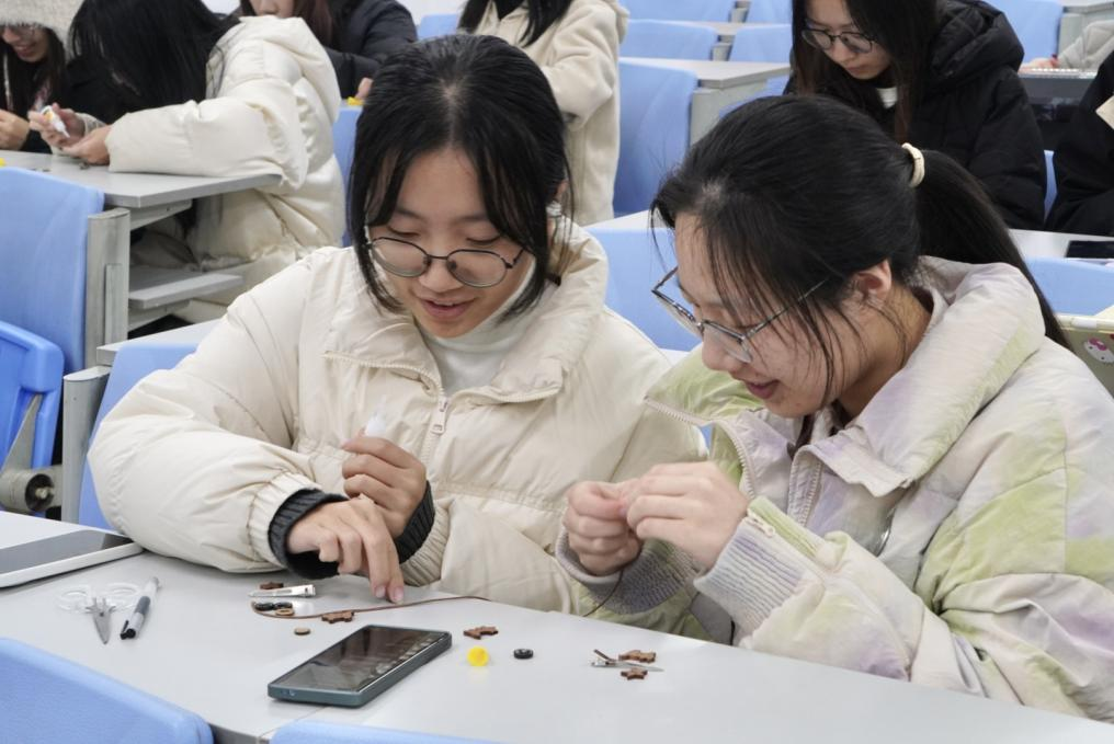 活动开始,同学们化身“心灵编织者”,在专注的创作过程中释放心理压力、缓解焦虑情绪,将负面心绪融入一针一线的编织里,用手作的温度抚愈内心的尘嚣,在一扣一结中收获心灵的安怡。