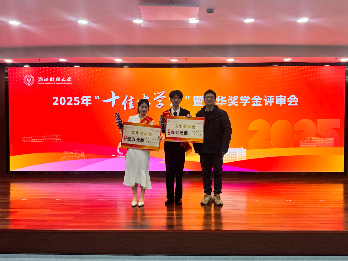 12月16日,2025年度浙江财经大学“十佳大学生”评选活动及优秀学子事迹分享盛会在学术四报隆重举行,我院2023级视传专业章尔斯与2023级摄影专业沈洋同学在激烈的竞争中脱颖而出,荣获2025年度校“十佳大学生”荣誉称号。