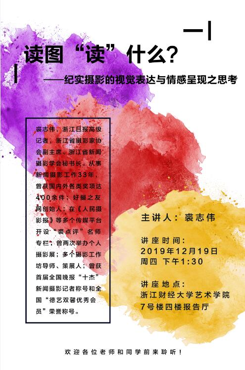 讲座地点:浙江财经大学艺术学院7号楼四楼报告厅