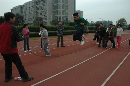 我校第十四届教职工健身运动会于10月28日在学校东体育场举行,我院分工会在学院党政领导带领下组队参加,共参与团体跳长绳、两人三足跑、60米迎面接力和拔河等所有的六个项目。经过大家团结一致、共同努力,获得了拔河第三名和60米迎面接力第八名的好成绩。
