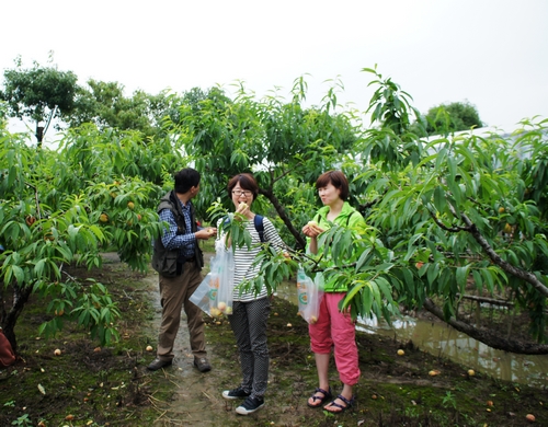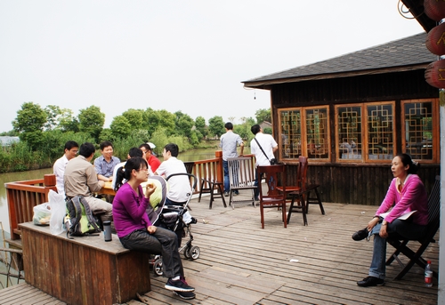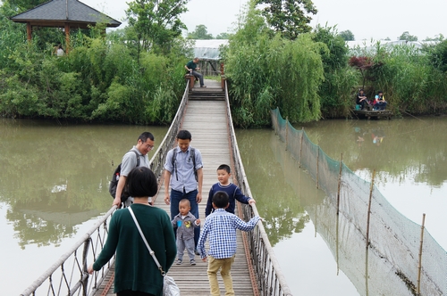 一路行程并不顺利,但农庄“天然去雕饰”的淳朴,还是使大家低落的情绪有所回升。看到吊桥,孩子们已经开心;弯腰寻找最大最红的那颗桃子,更是让大人们也兴高采烈了。摘桃、觅枇杷,撵鸭子、喂羊,出果园进菜园……虽是“不劳而获”,收获的满足感却是一样的,原汁原味的农家餐后,临河来几局牌消遣下;隐入芦苇丛垂钓会儿,都是难得的放松。