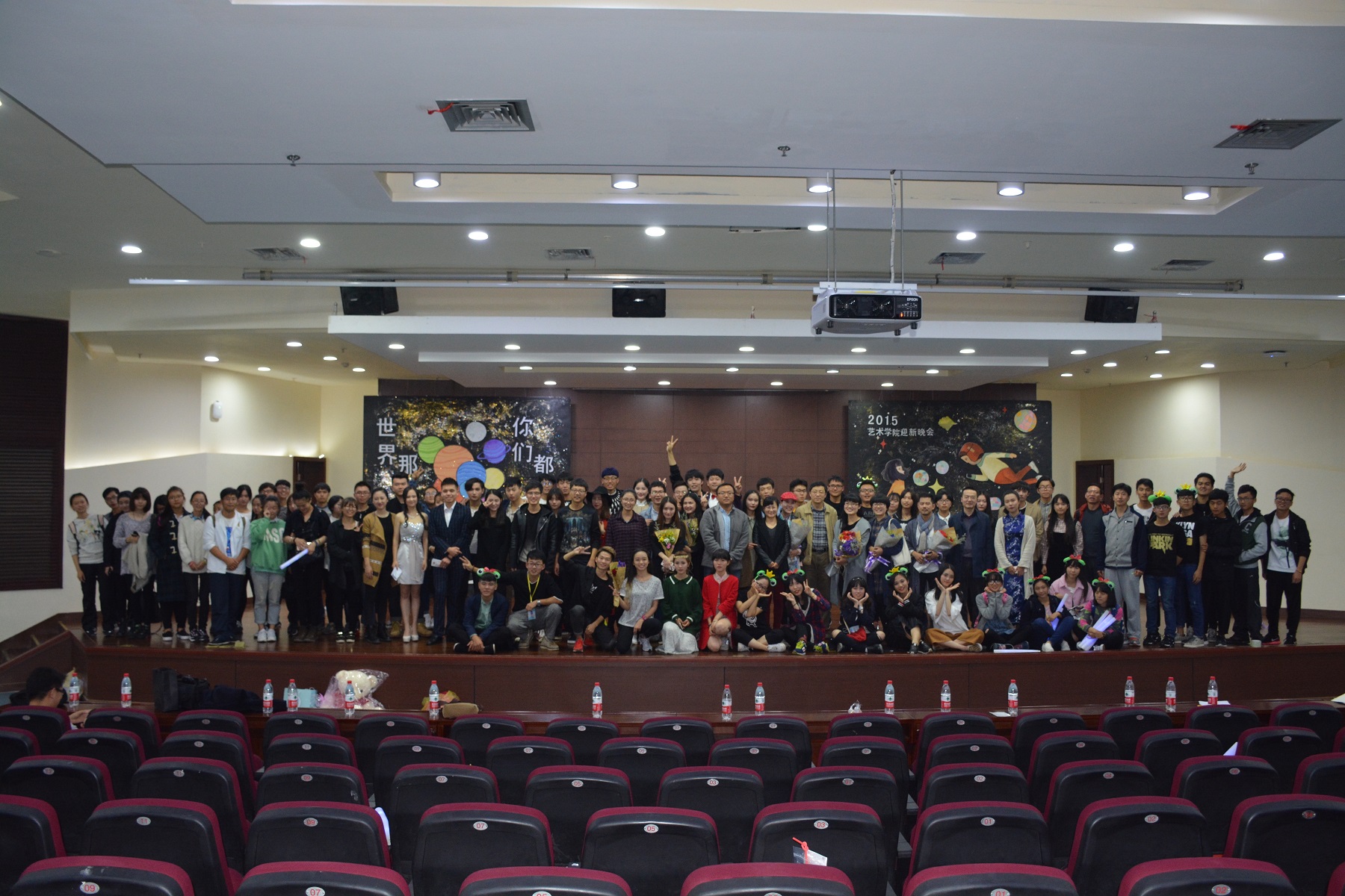 2015年11月3日18点30分我们---艺术学院在学术一报为大家献上了一场“世界那么大,你们都来了”迎新晚会。艺术学院院长邵大浪老师、党总支副书记方咏老师,教师邵杰、朱伟斌和其他老师、辅导员等共同参加这次晚会。