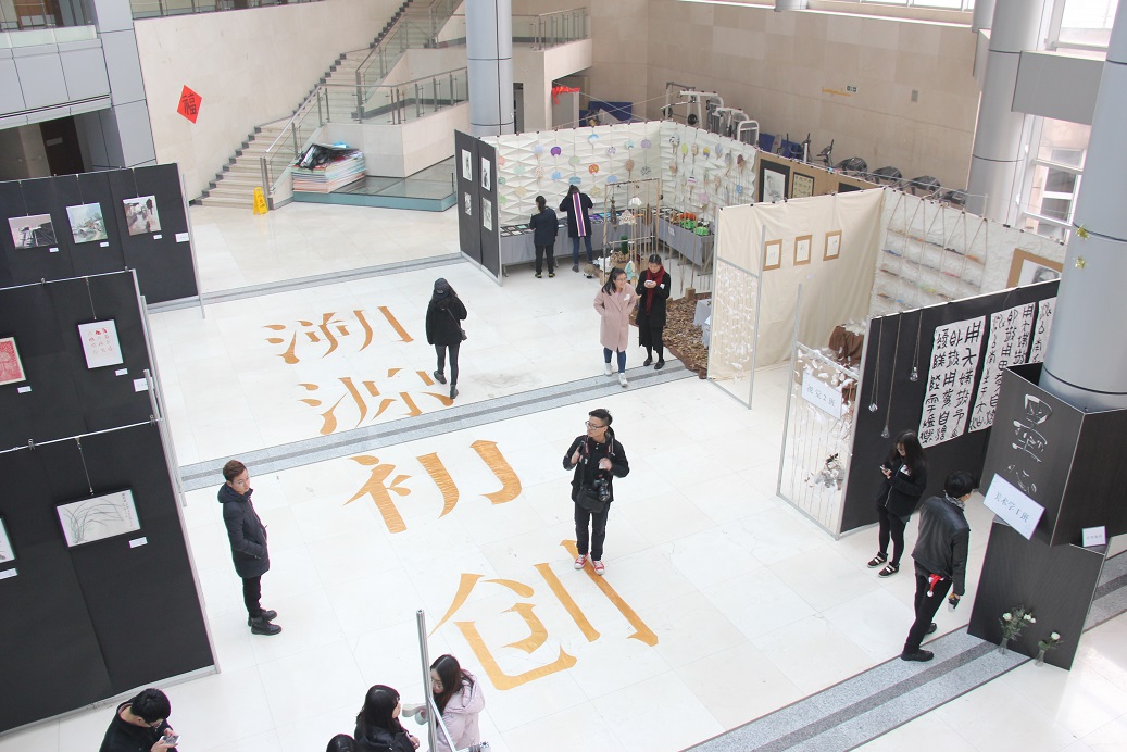 12月25日上午10点,艺术学院学生作品展卖暨“艺创”中心成立仪式在文化中心大厅和文化长廊同时进行。在文化中心大厅举行了“艺创”中心成立仪式。仪式采取了学生作品展卖会的形式,共展出了艺术学院学子的书法、国画、油画、版画、摄影、立构等本学期的课程作业作品,共计300余件。现场,师生共话艺术、品鉴作品。活动当天,展卖会共售出11件作品,成交额达到6000余元。