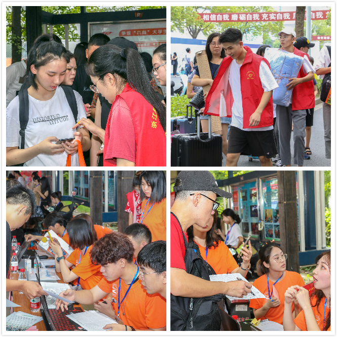 为做好迎新工作,院团委学生会、新生班助、志愿者组成了迎新服务团,帮助新生们完成注册、领取新生“大礼包”以及入住宿舍等工作,简化入学手续,为新生报到带来了极大便利。志愿者们满腔热情,帮新生和家长搬运行李,引导新生到园区办理入住手续,介绍校园和生活园区各楼的分布,让刚踏入大学校园的新生们感受到了别样的温暖。学校和学院领导也亲临现场,看望新生及家长,慰问负责迎新工作的师生。迎新现场,学生会新闻部为每位新生拍摄了留念照片,记录这特殊的一刻。