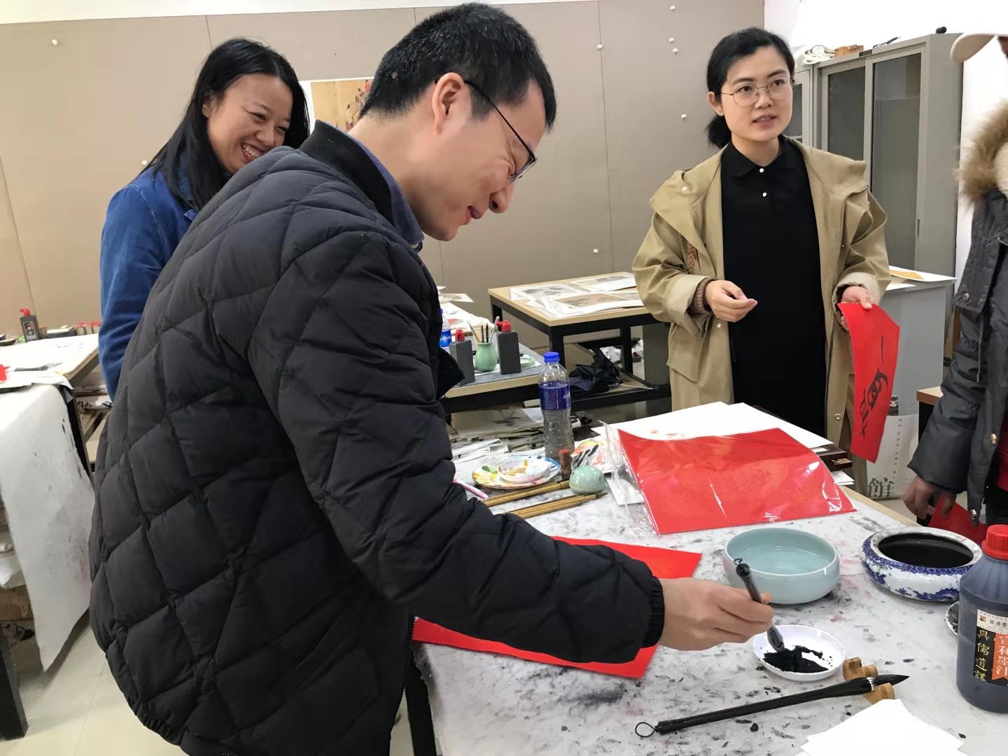 教职工书画大赛中,老师们在红红的斗方纸上写上大大的福字,祝愿来年能够顺顺利利。还有老师在红纸上画上了可爱的小老鼠,共同期待2020年鼠年的到来。