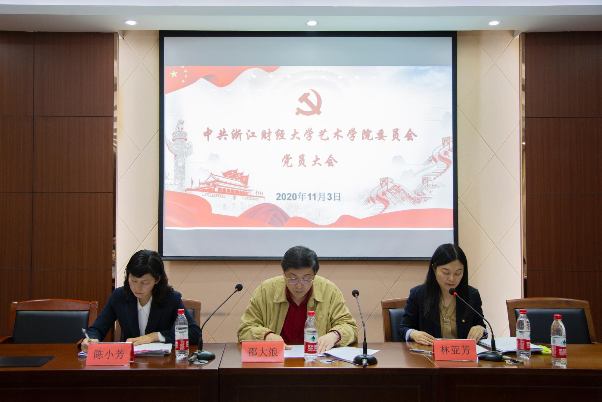 11月3日下午,艺术学院在412报告厅召开党员大会,传达学习校党委书记李金昌在中国共产党浙江财经大学第二次代表大会动员大会上的讲话精神,部署落实学校第二次党代会筹备工作。学院院长邵大浪、党委书记林亚芳、党委副书记陈小芳以及学院全体师生党员参加了此次大会。会议由学院党委书记林亚芳主持。