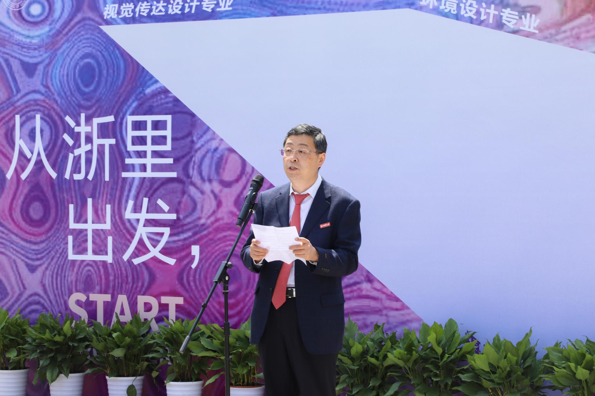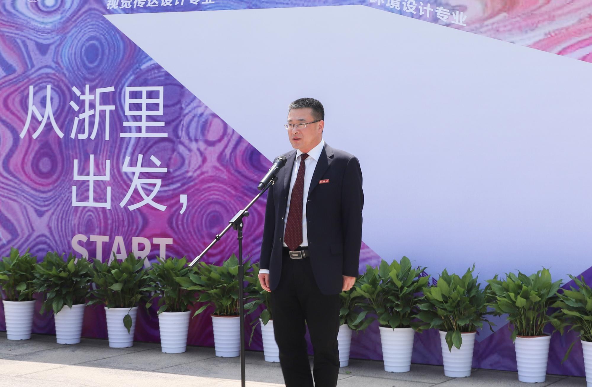 艺术学院院长邵大浪代表学院致辞。他表示学院建院20年以来,始终秉承立德树人、与时俱进的精神,不断探索和推进从实践教学到整个人才培养的建设,努力培养适应社会发展需求,服务地方经济建设的高素质艺术人才。他对毕业生们提出了三点希望:一是根植乡土文化的历史底蕴,以艺术创作反哺家乡;二是继承敢为人先的浙江精神,善于“闯”、勇于“试”,做浙江精神的实践者和创造者;三是担当新兴青年的时代重任,将个人梦想熔铸于中国梦之中。