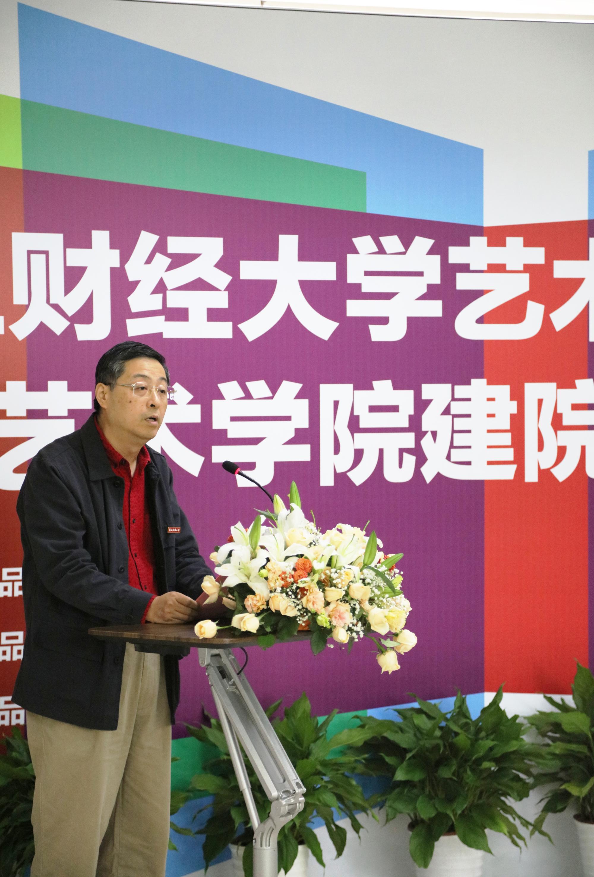 学院院长邵大浪代表学院致开幕词。他表示艺术学院自2007年始建以来,全体艺院人以十五年的风雨兼程,书写了充满开拓创新、不懈奋斗的历史。建院十五年来,学院相继获批艺术品市场与管理学术硕士学位点、省级一流本科专业建设点、美术专业硕士学位点,在办学治学的重要领域实现了零的突破,在人才培养、学科建设、师资队伍建设、教学科研等方面均取得了喜人成绩。同时,他代表学院对学校在艺术学院陈列馆的建设上给予的帮助支持致以感谢。他表示艺术学院陈列馆的建成,不仅极大地改善了艺术学院的办学条件,为学院师生创造了更好的教育教学环境,也是学校展示美育成果的新窗口和推进五育并举育人工作的新成就。站在新的起点,艺术学院将以更大的勇气和智慧不断奋进、继往开来,为学校特色鲜明的一流财经大学建设和区域经济文化发展贡献智慧和力量。