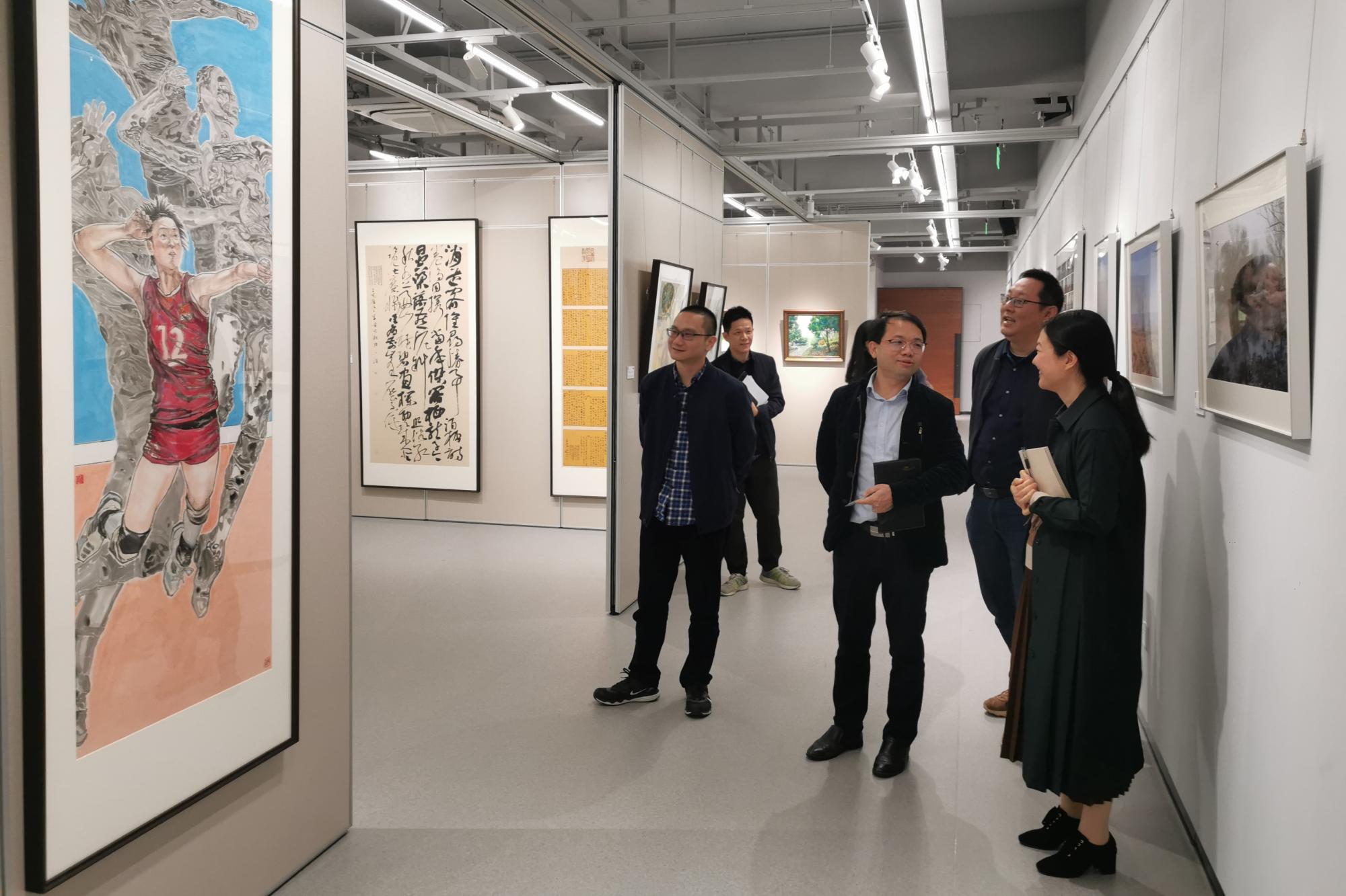 座谈会后,学院领导陪同贺武华处长一行参观了学院陈列馆开馆首展“艺术学院建院15周年作品展”。