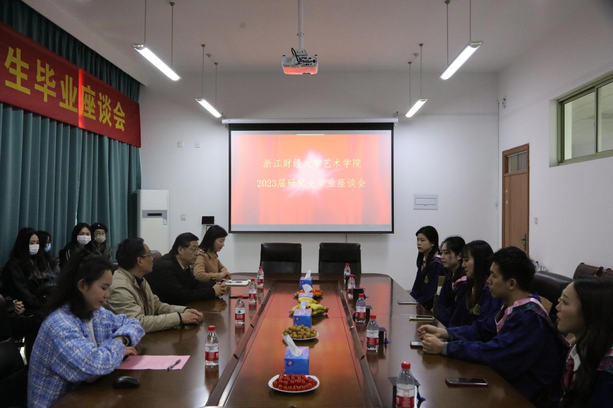 3月16日下午,浙江财经大学艺术学院2023届研究生毕业座谈会在艺术学院512会议室隆重举行。艺术学院院长邵大浪、党委副书记陈小芳、导师代表徐文平、辅导员童玲、2023届全体研究生毕业生以及各年级学生代表出席会议。