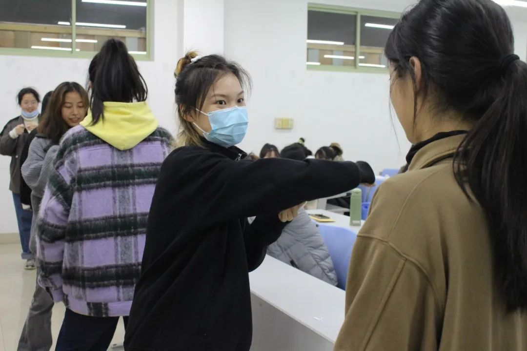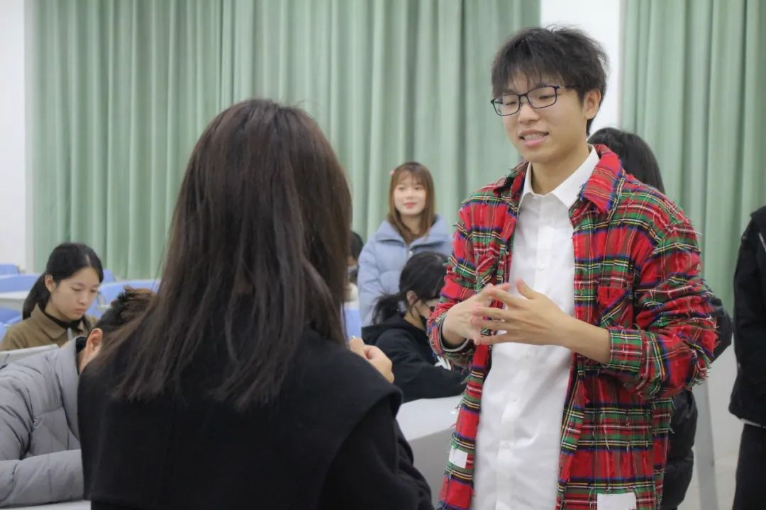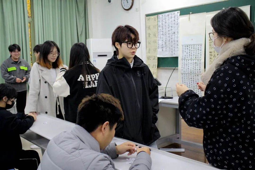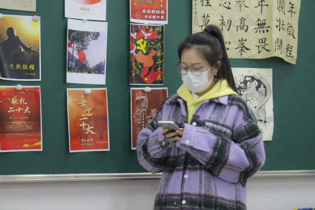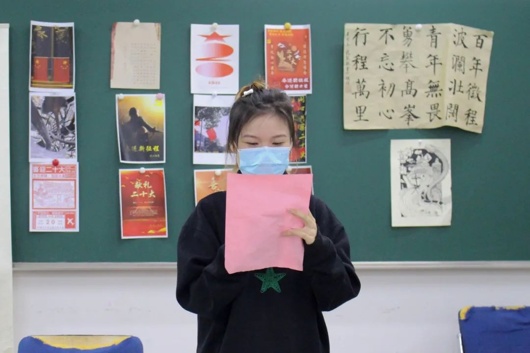 一人通过比划与描述,另一人来猜与二十大提到的内容和精神相关的词语或句子。活动精彩活泼,调动了同学们极大的积极性,在欢声笑语的同时,再一次加深了同学们对党史和二十大精神内涵的认识。