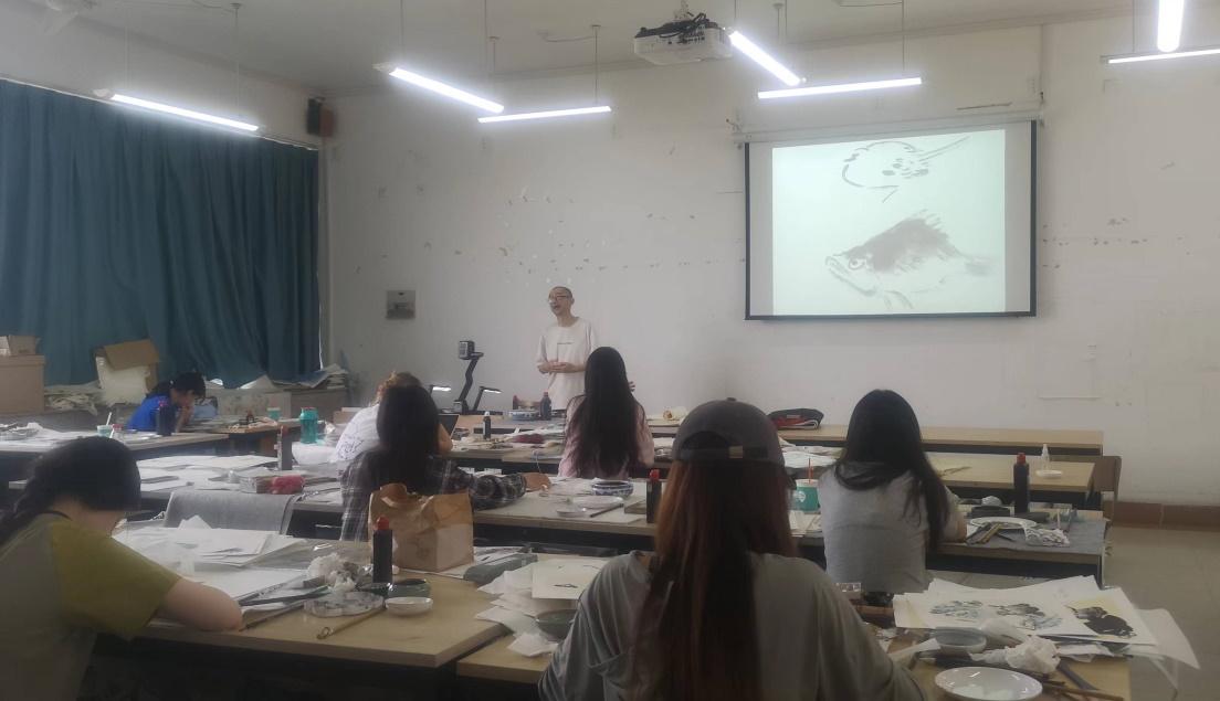 本次交流,王忠民教授理论与课堂示范相结合方式,过程方法新颖、信息量大,着重以八大山人和潘天寿为个案研究对象,阐释了写意花鸟画中独特的捉形特点,为师生们带来了一场精彩的分享。