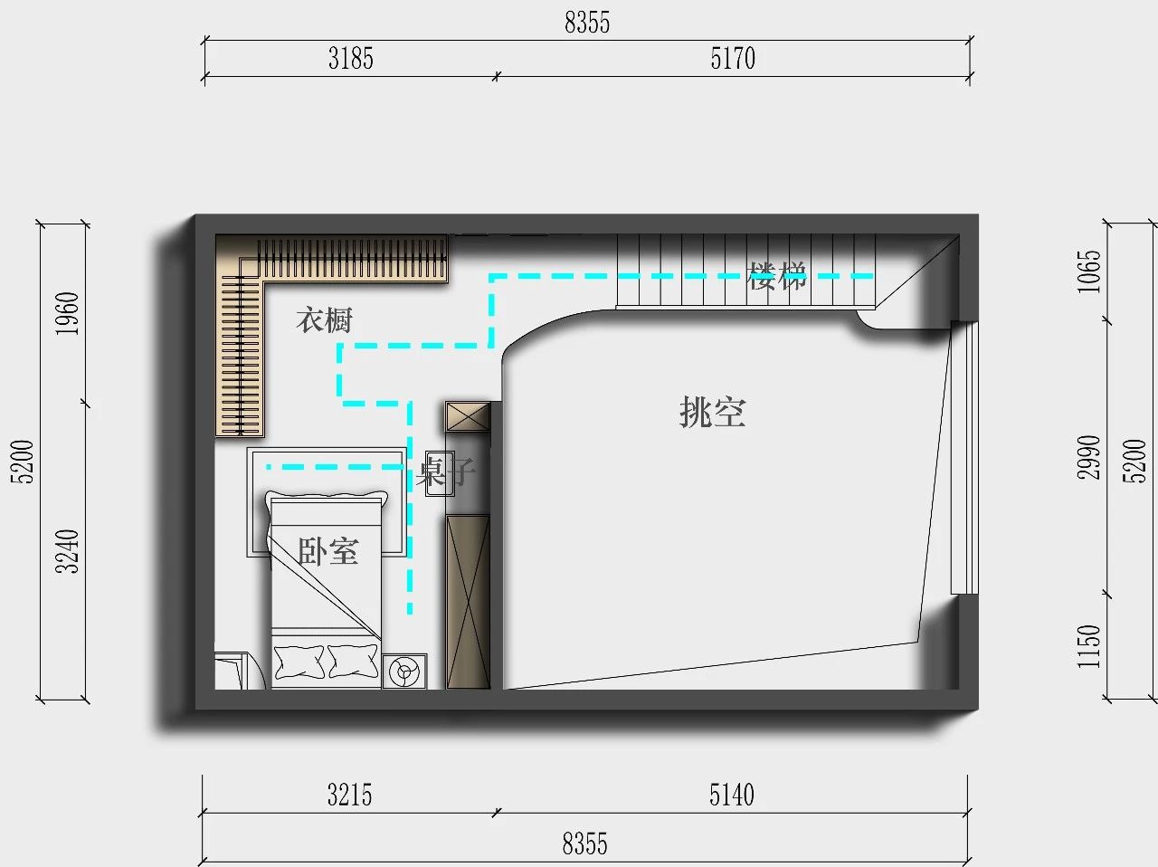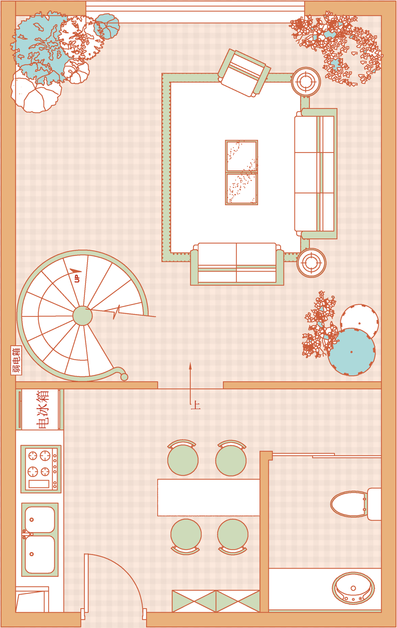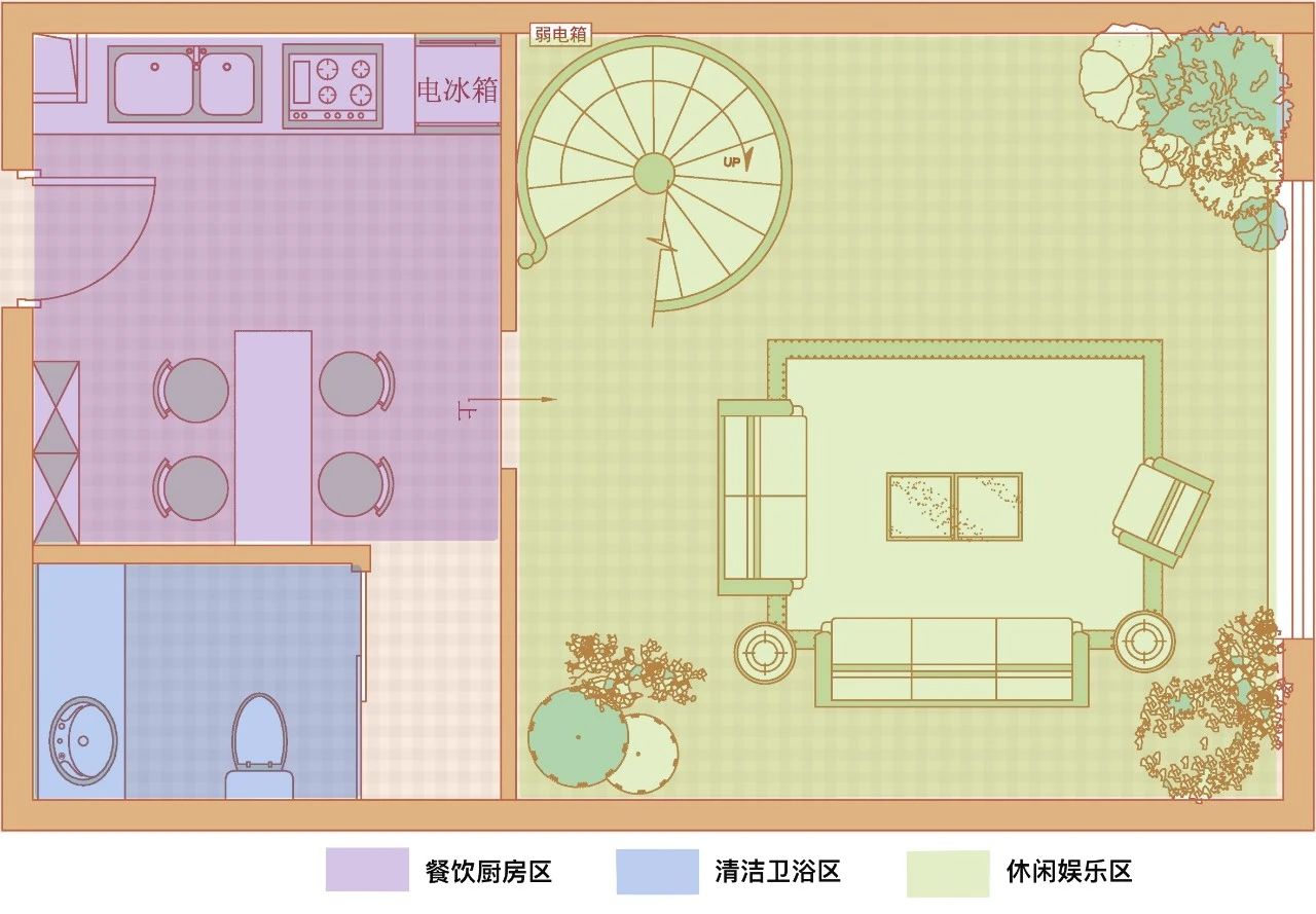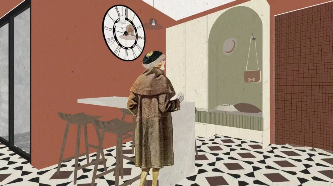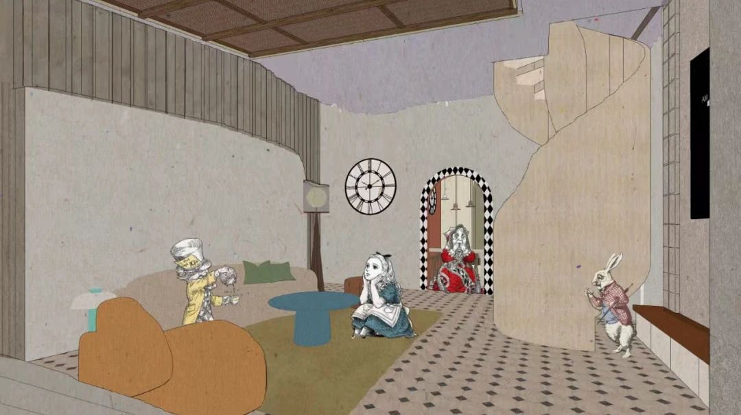 设计理念:每个女孩心中都住着一个爱丽丝,希望自己掉入兔子洞,遇见疯帽子、三月兔、柴郡猫等小伙伴,冒险在魔法后花园里。本案人物设定为酷爱绘本创作的插画师,以爱丽丝梦游仙境故事为主题,展开单身公寓空间的设计概念演绎。将故事脉络化为空间动线,提取爱丽丝冒险故事关键情节,通过爱丽丝蓝裙、钟表、扑克牌等动画符号的空间元素演变,打造沉浸式感官体验,营造神秘且童趣的家居氛围,讲述蜕变成就梦想的积极人生故事。