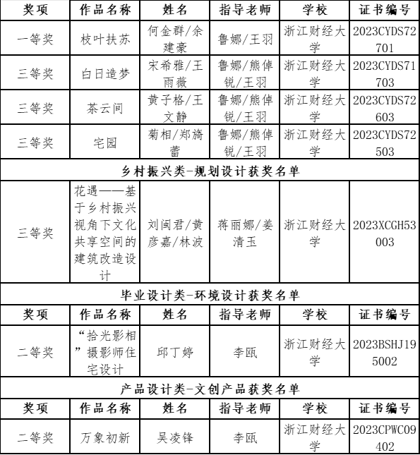 2023年11月13日,第九届“中装杯”全国大学生环境设计大赛结果揭晓,我院环境设计专业学生作品参赛19项,获奖7项,分别荣获全国一等奖1项,二等奖2项、三等奖4项。