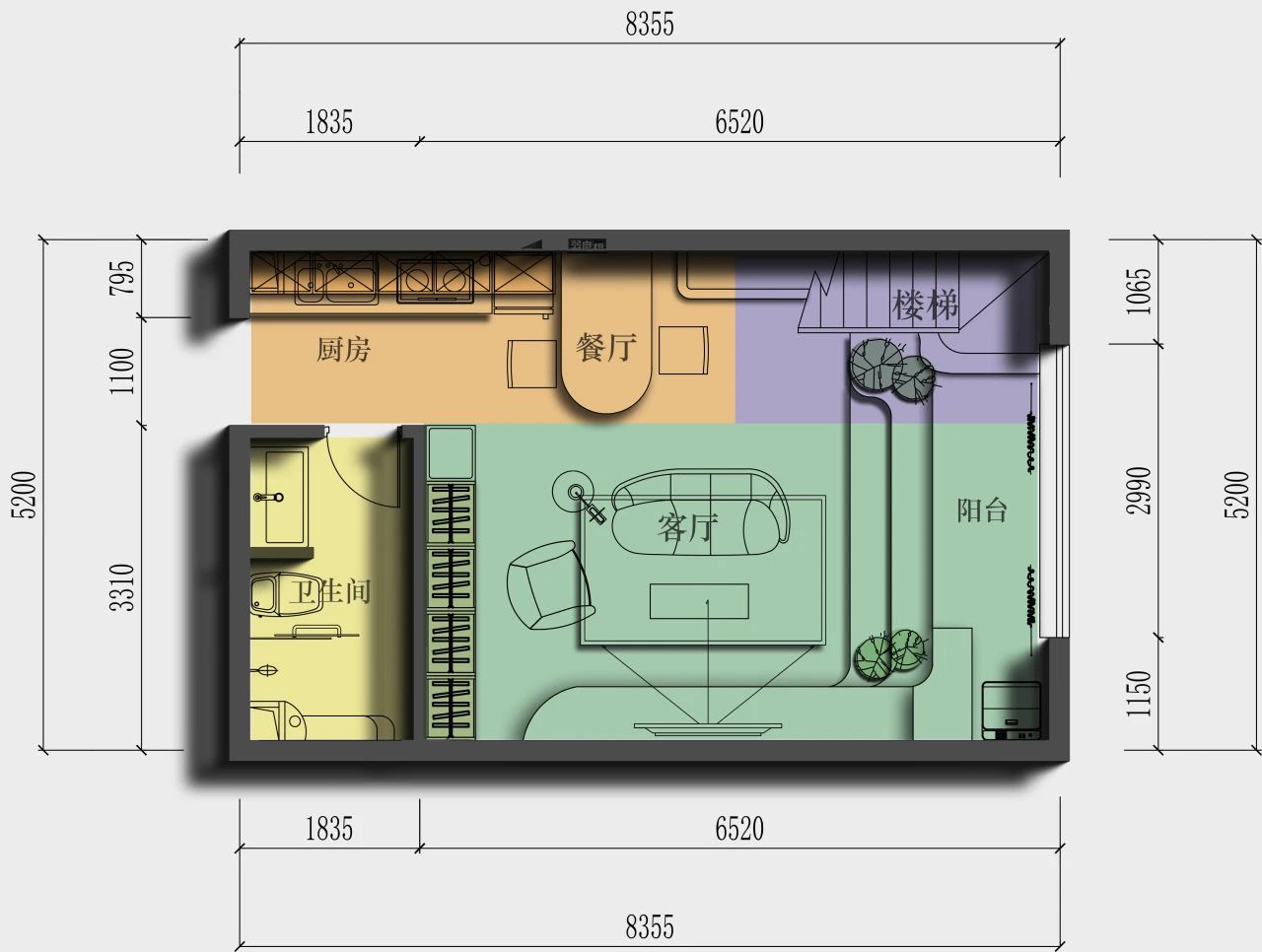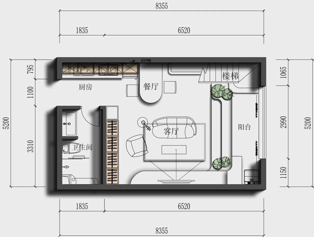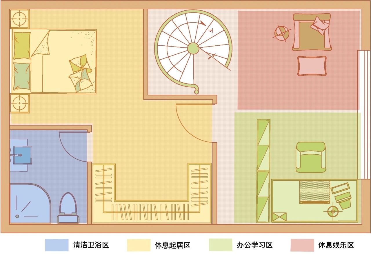 设计理念:万目攒视,见有勾萌出,渐大;俄成树,枝叶扶苏,倏而花,倏而实,硕大芳馥,累累满树。每位单身女性都是一株蓄势待发的树苗,在灯火喧嚣的城市里,树苗需要在参天大树的庇护下恣意而生。本案是一套为单身女性打造的高质量公寓空间,它即为参天大树,树屋提供满满的安全感与舒适感;树洞提供足够的收纳空间;果实提供安静的办公学习空间,让个人的内在提升永不停息;绿叶寓意自然,让居住者在钢筋水泥空间中触摸清新和自然。
