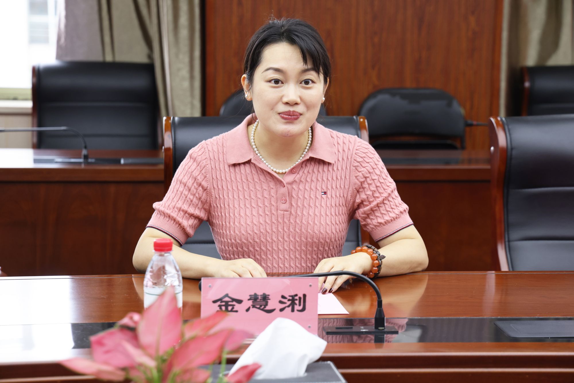 金慧浰对学校的热情接待表示感谢,她介绍了公司的发展历程、业务范围、所获荣誉等情况。她表示,浙辅堂教育科技与学校有着共同的育人目标,希望通过设立教育基金,真正做到取之于社会,回馈于社会,为学校的教育事业添砖加瓦,培养更多服务国家和社会的卓越人才。