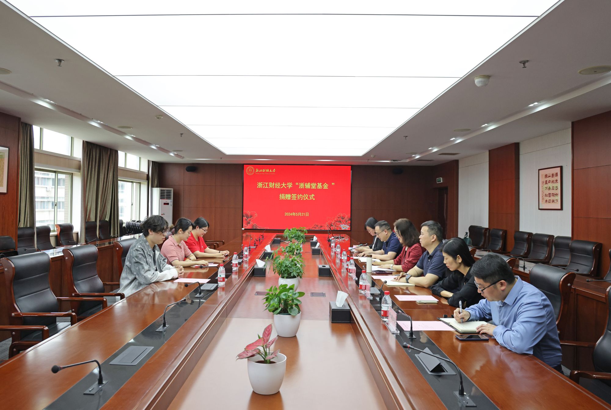 5月21日,浙江财经大学与杭州浙辅堂教育科技有限公司举行“浙辅堂基金”捐赠仪式。杭州浙辅堂教育科技有限公司在艺术学院设立“浙辅堂基金”。副校长郑亚莉、浙辅堂教育科技有限公司总经理金慧浰、副总经理常银、市场总监陈皓、校友办公室主任吴玻、计划财务处副处长阮郡、学院党政领导班子出席签约仪式。仪式由学院党委书记刘向前主持。
