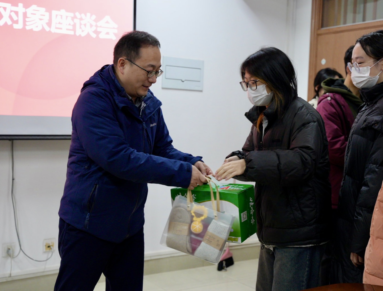 最后,与会老师们向每位资助对象呈上了学院精心筹备的慰问品,并逐一进行贴心的叮嘱与诚挚的祝福。礼轻情意重,这不仅仅是一份物质上的关怀,更是学院深情厚谊、老师殷切期望的体现,满载着对同学们璀璨未来的无限憧憬与美好祝愿。
