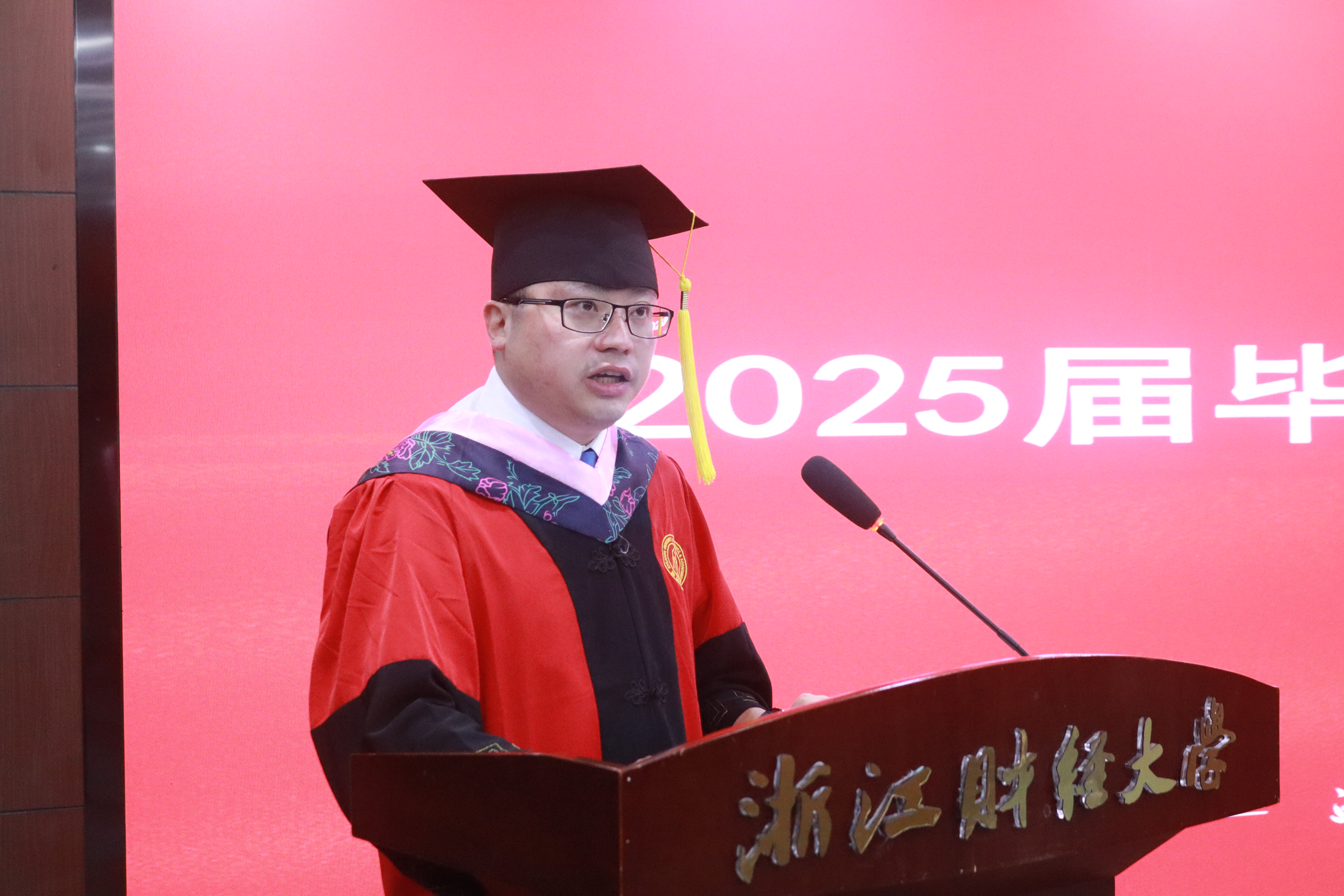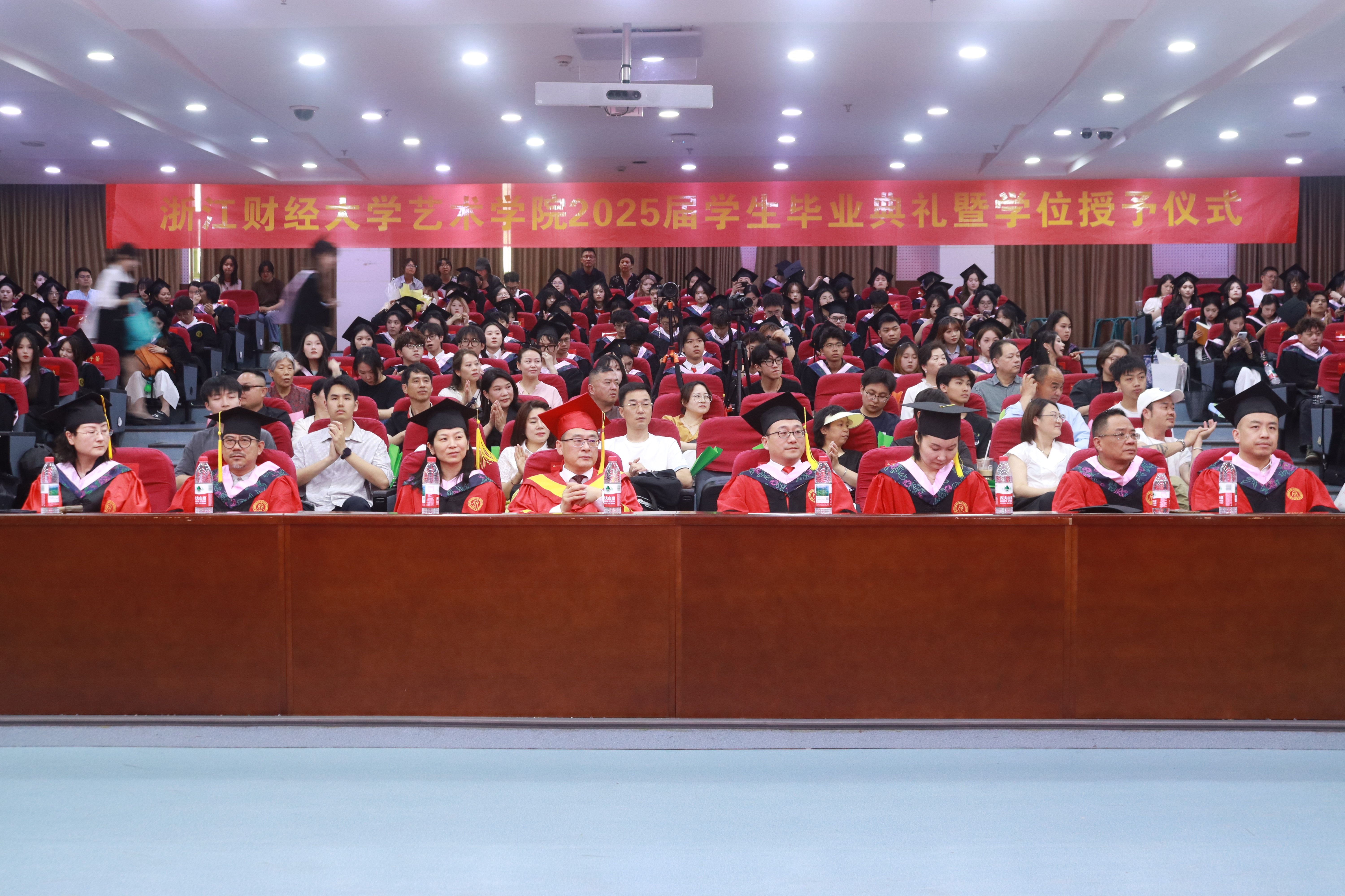 6月4日下午,浙江财经大学艺术学院2025届学生毕业典礼暨学位授予仪式在学术中心第四报告厅举行。浙江财经大学党委副书记徐晓东,艺术学院党委书记刘向前、副院长(主持工作)毛宁、学术副院长元国霞,各专业负责人、系主任、专任教师代表,全体行政管理人员以及全体2025届毕业生,毕业生家长代表等参加典礼,共同见证了这一难忘的时刻。典礼由学院党委副书记叶城均主持。