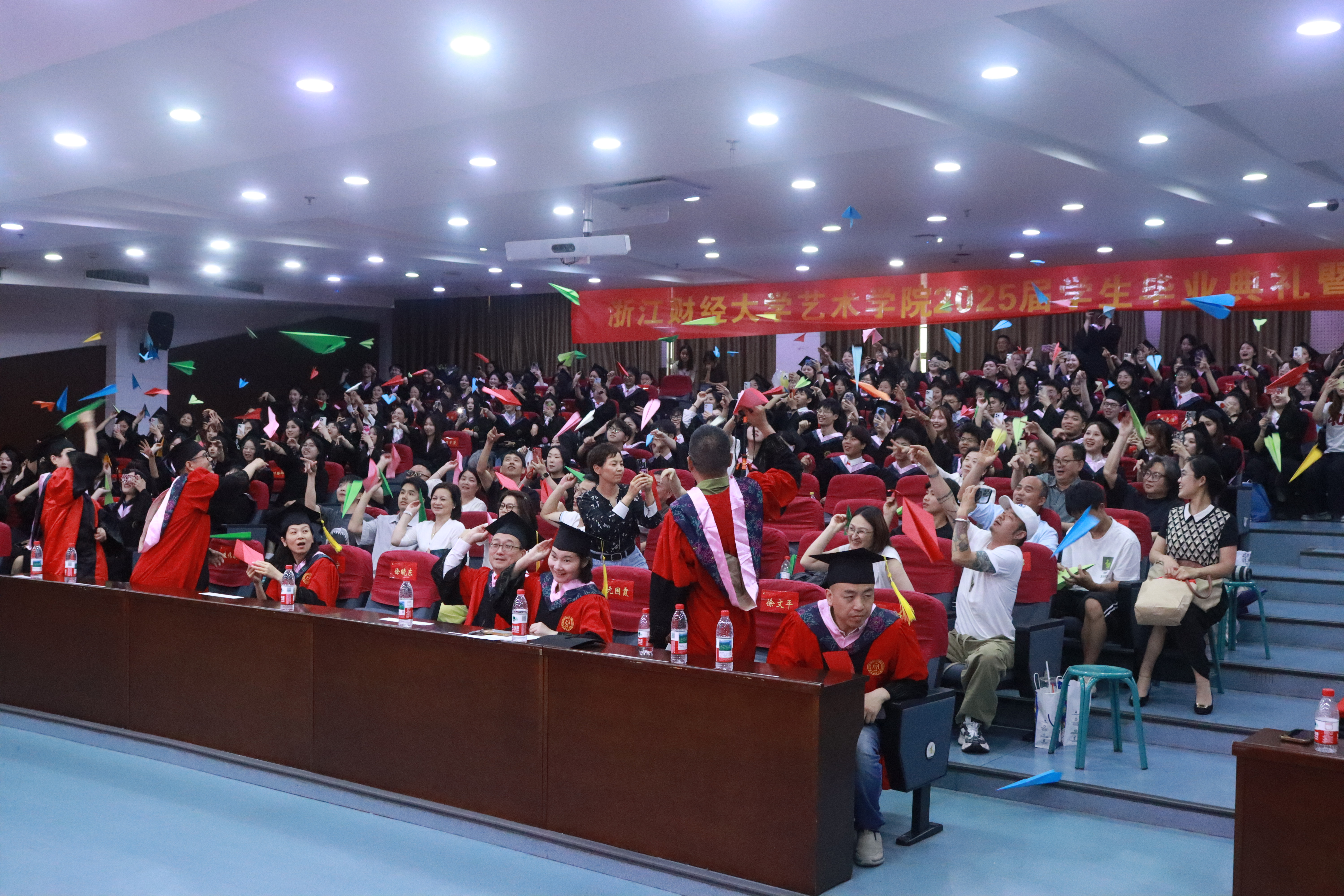 在放飞承载着对十年后愿望的纸飞机后,浙江财经大学艺术学院2025届学生毕业典礼暨学位授予仪式正式落下帷幕。