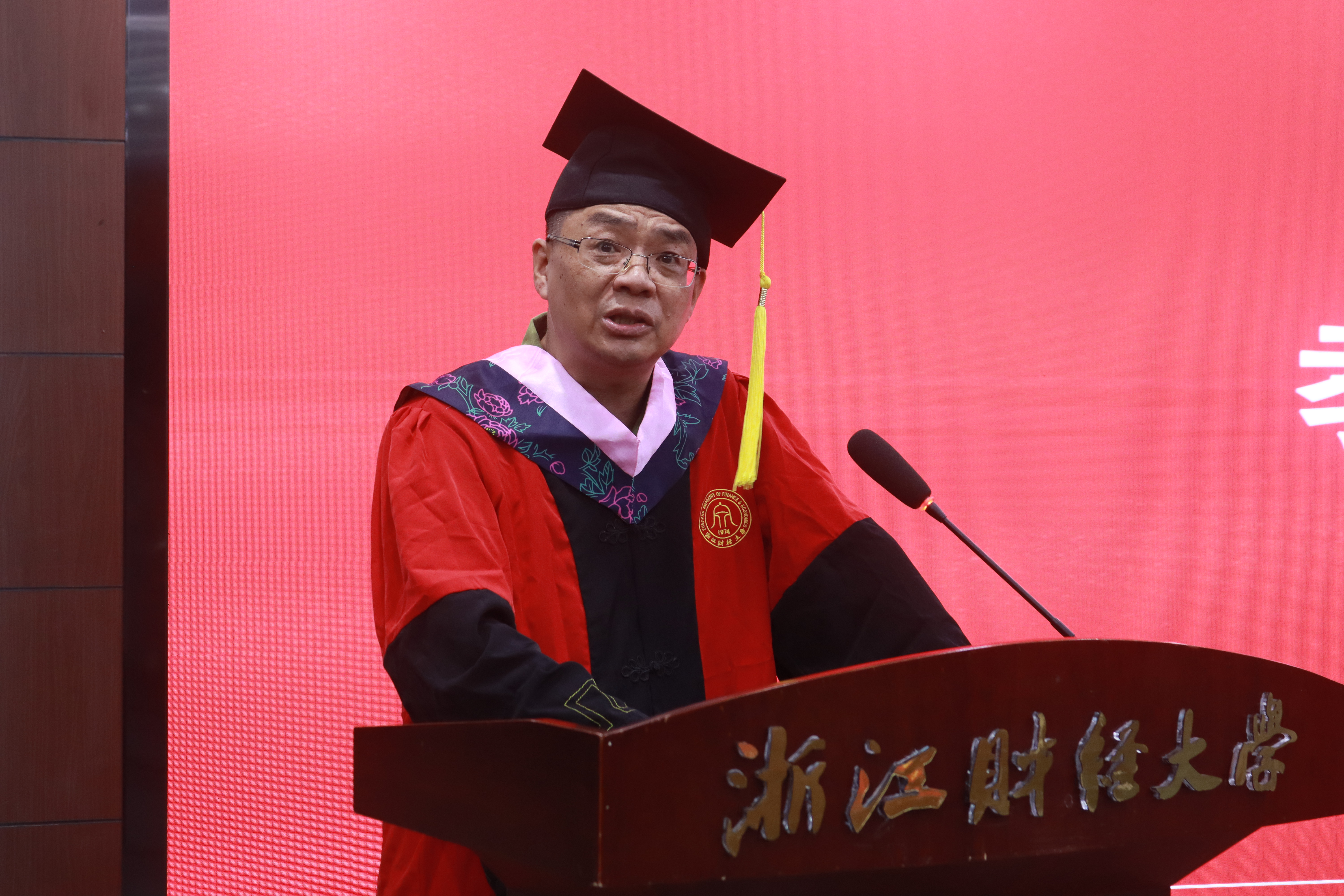 毕业典礼上,毛宁以“人生起新章,壮志引高歌”为题,与毕业生们共同回首在浙财艺术度过的四年时光,表达了对全体毕业生的祝福与希冀。她以三则“艺术真谛”与大家共勉,一是要以家国情怀为墨,润染人生底色,肩负起照亮社会、温暖人间的使命;二是要以躬身实践为纸,书写担当华章,成为用美创作价值浸润世界的“实干型艺术家”;三是要以精益求精为砚,磨砺创新锋芒,“日新其艺”,终身学习,让艺术之树常青。