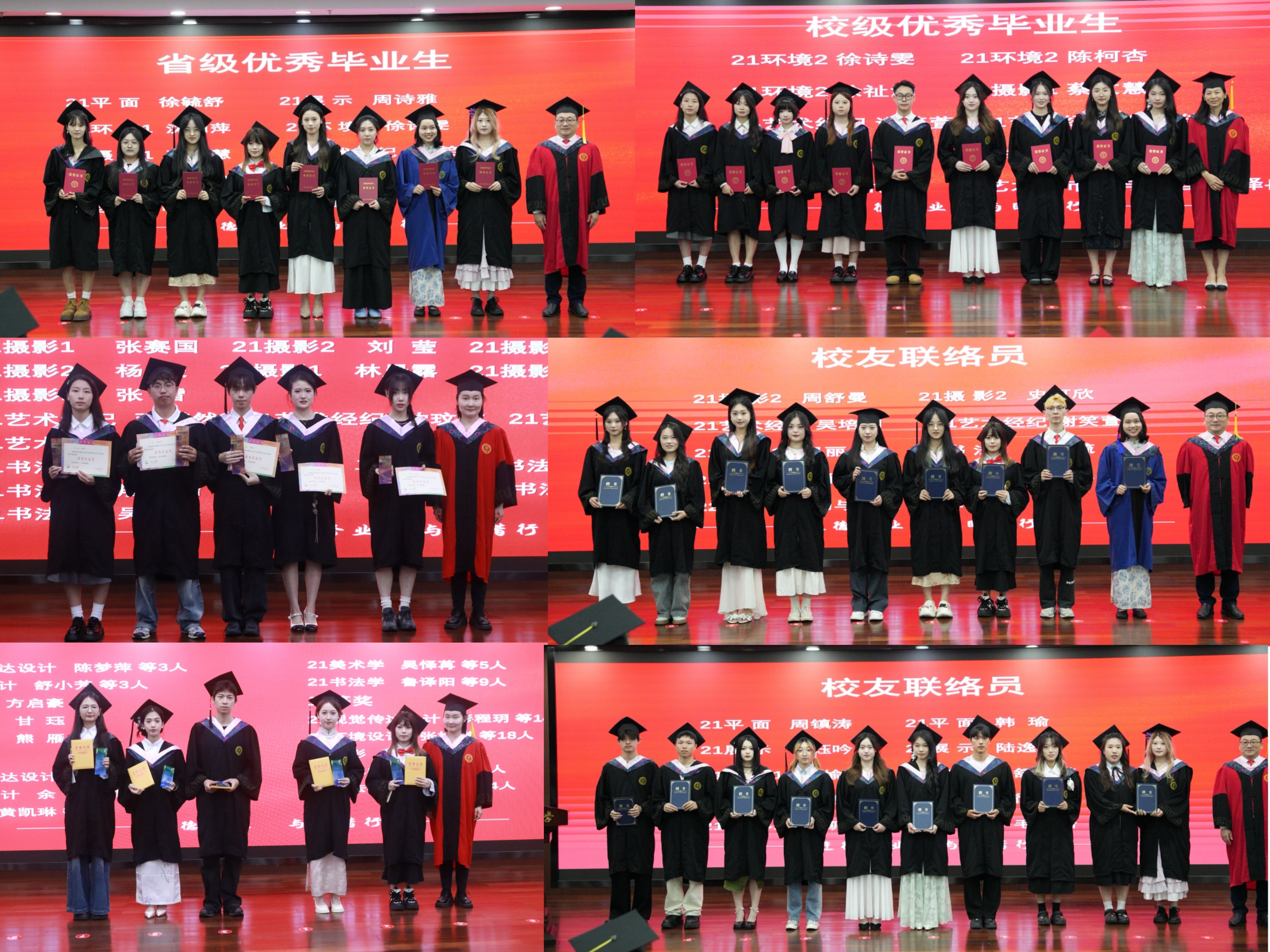刘向前、毛宁分别为省级、校级优秀毕业生颁发荣誉证书并给予表彰,元国霞为2025届优秀毕业作品的创作者颁发荣誉证书。此外,学院还聘任了19位毕业生担任校友联络员,旨在进一步推动“校友名校”战略,增强母校与广大校友间的联系,刘向前为全体校友联络员颁发了聘书。