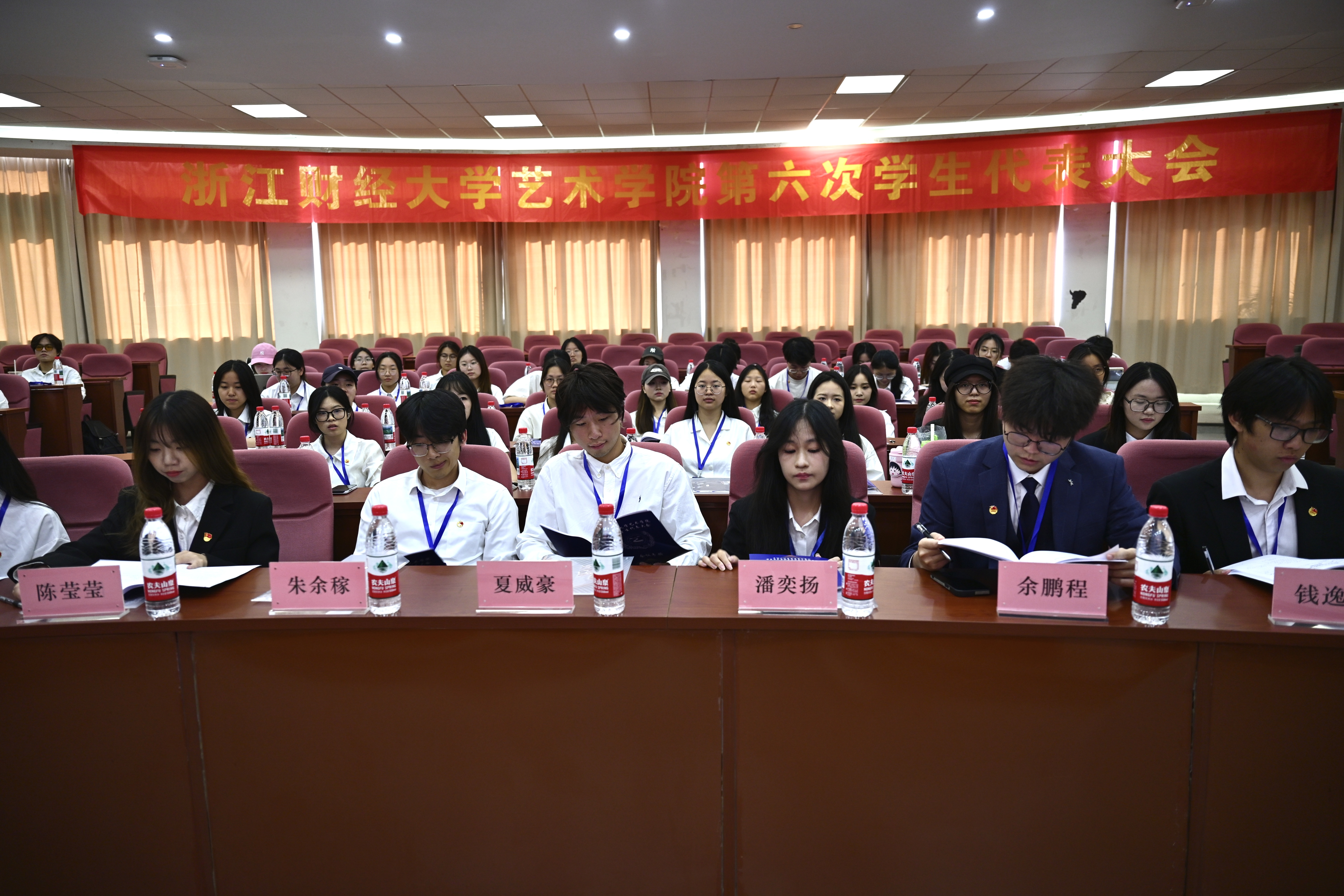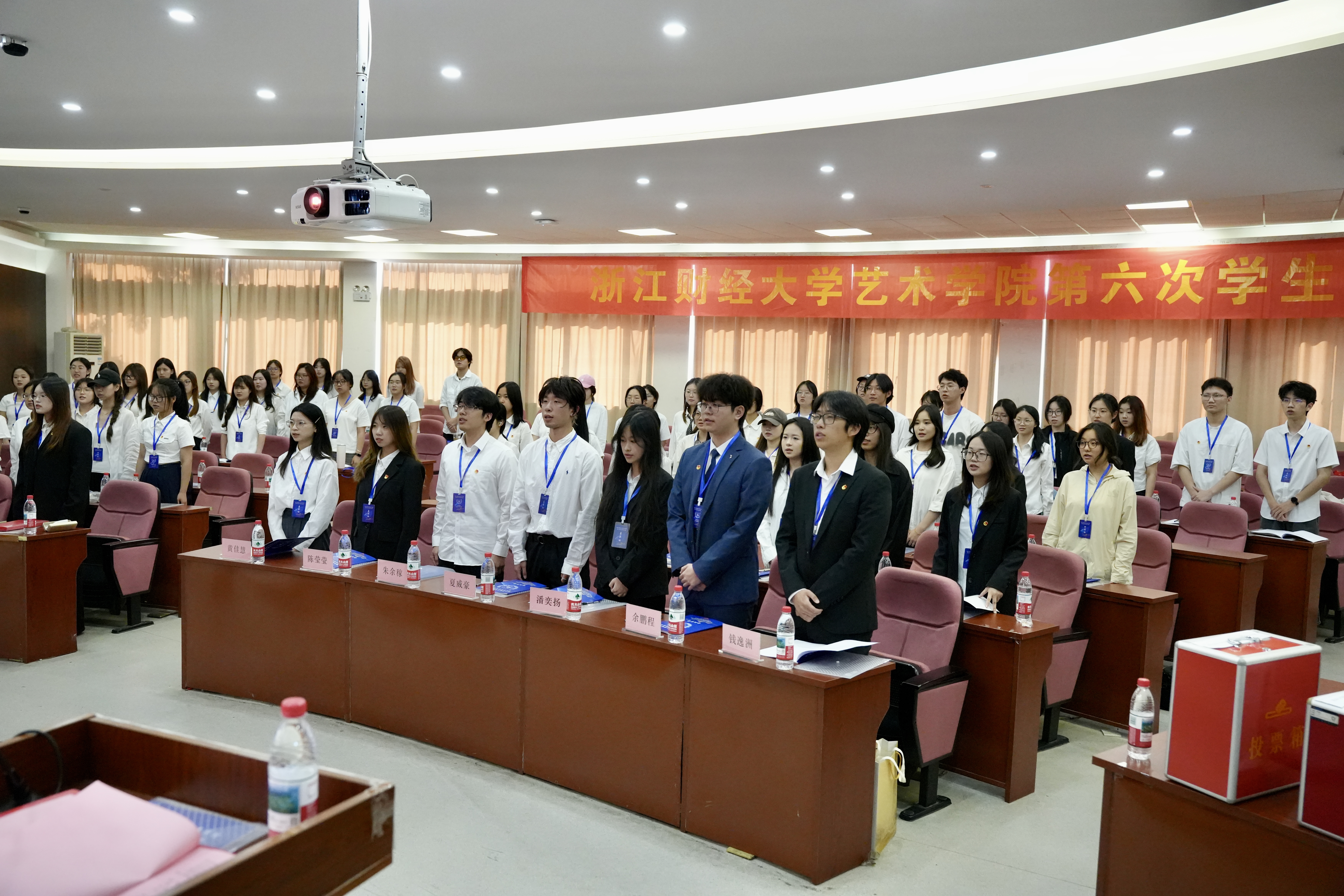 5月29日下午,浙江财经大学艺术学院第六次学生代表大会在7号楼112报告厅隆重举行。艺术学院党委副书记叶城均、学办主任高媛晴、团委书记吴文杰、辅导员谢银环,校学生会主席团成员王瑞江,以及公共管理学院、信息技术与人工智能学院、经济学院、外国语学院等兄弟学院代表,与大会主席团成员、八十余名正式代表齐聚一堂,共襄盛会。