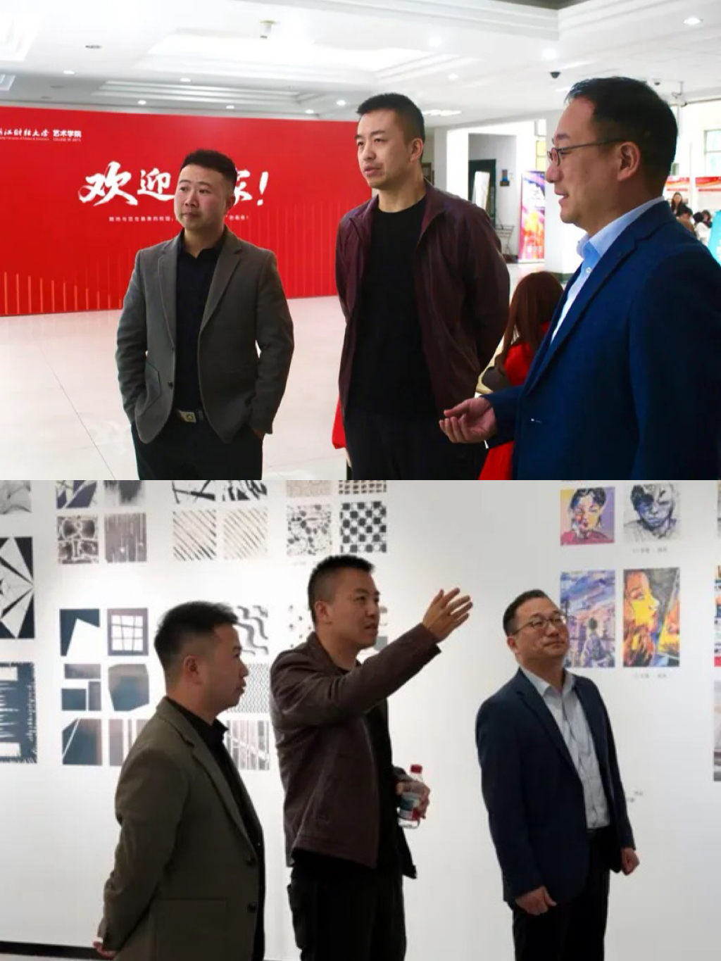 陈列馆内,一幅幅作品铺陈开来:有的以新锐设计语言诠释传统文化,让非遗元素在现代设计中焕发新生;有的聚焦社会热点,用图形与色彩的碰撞传递人文关怀;还有的在品牌设计、包装创意中展现商业与艺术的精妙平衡。学院领导、老师与校友们共同漫步于作品之间,欣赏2003-2025年间届届学生用视觉语言传递人文温度的担当。这场展览不仅是专业成果的展示,更成为校友与母校、与专业对话的桥梁,让视觉传达的创意火种,在一届又一届艺术学子手中接续传递,绽放出更耀眼的光芒。