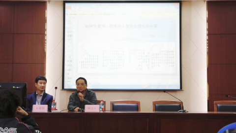 11月4日,韩国京东大学国际融合部书法专业主任、教授,韩国书艺学会副会长朴载福受邀来我院作《如何学篆书:以秦代刻石为例》专题讲座,讲座由院学术委员会主任、书法系主任徐文平教授主持,我院书法学教师、本科生及全体书法专业研究生参加了讲座。