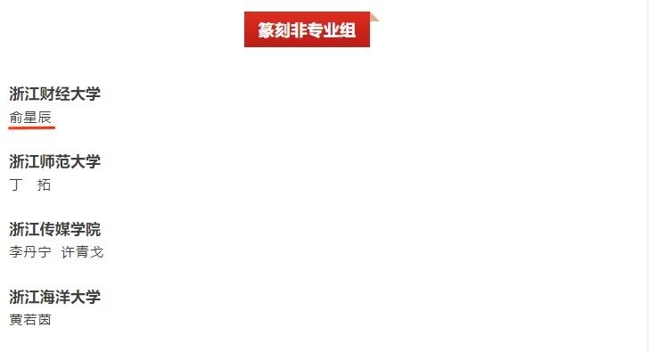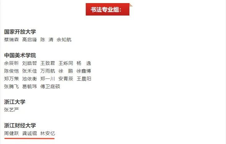 浙江省第三届大学生书法篆刻大赛入展名单