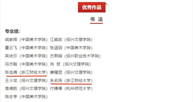浙江省第三届大学生书法篆刻大赛获奖名单