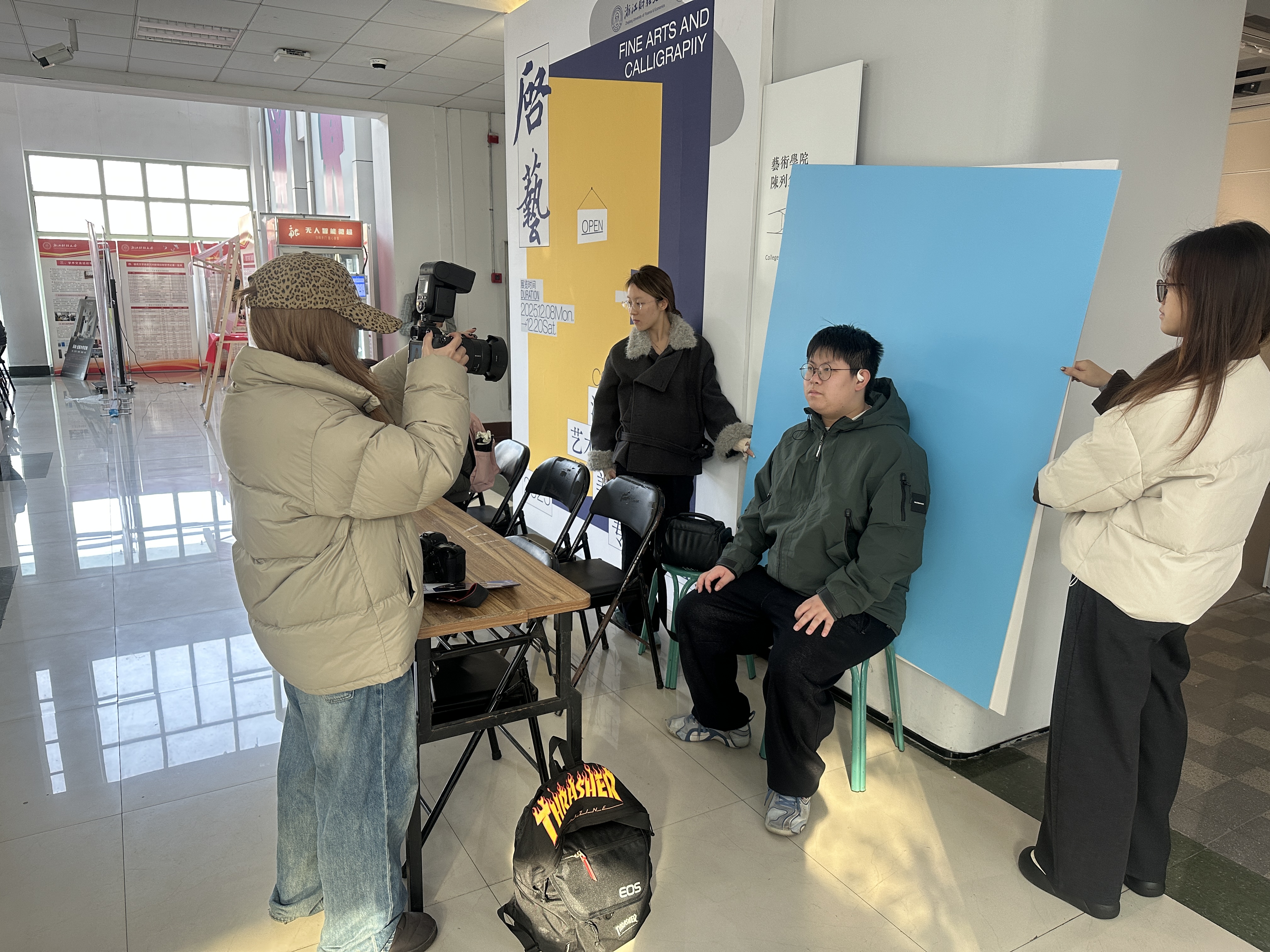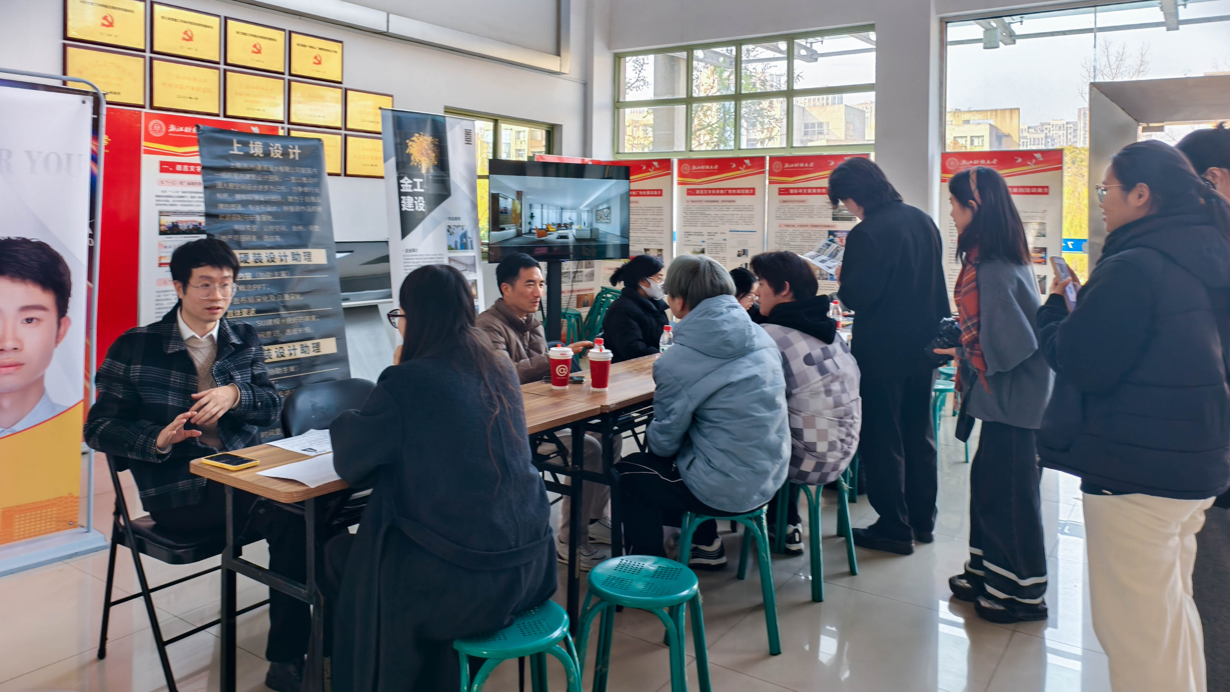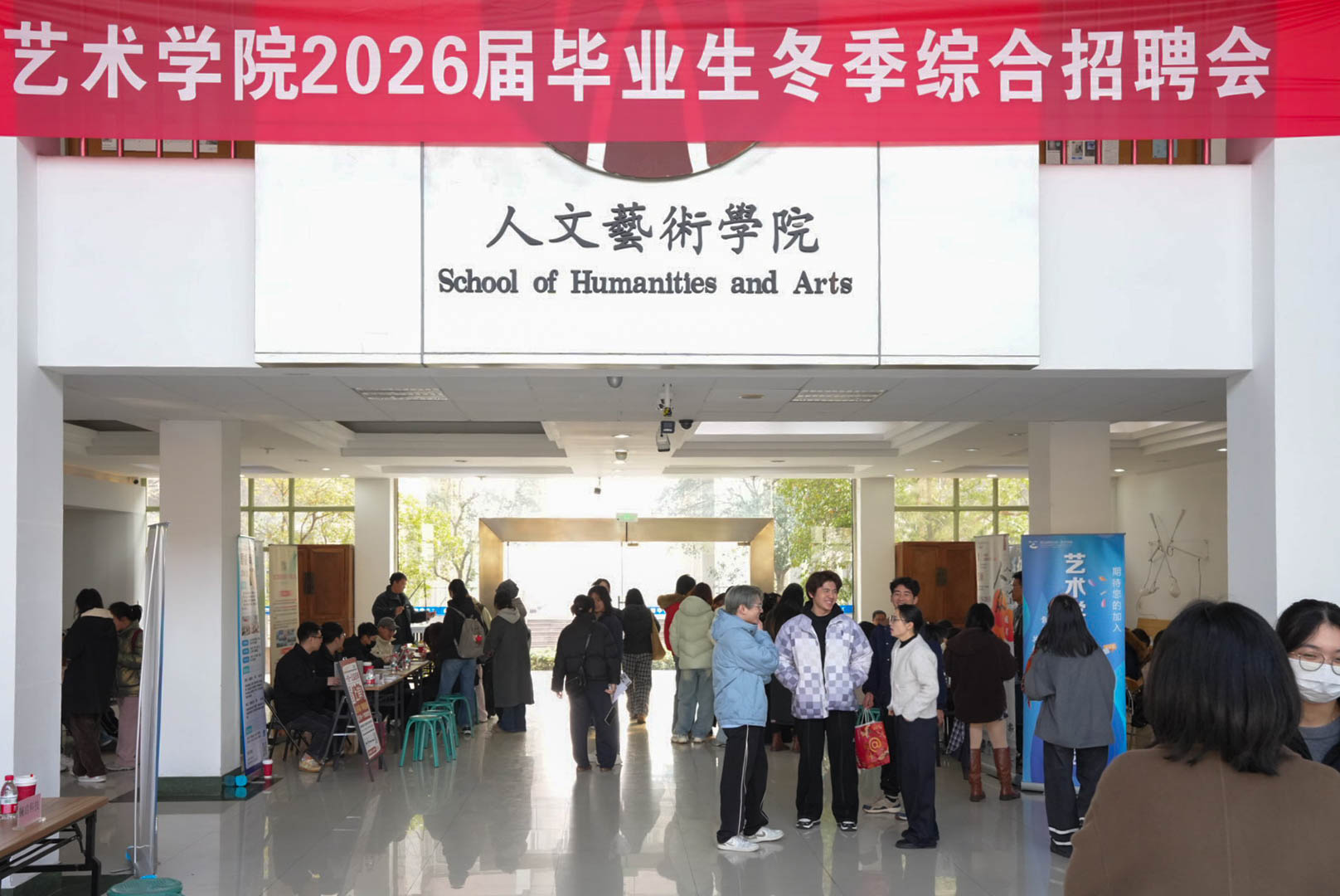 12月18日下午,艺术学院2026届毕业生冬季综合招聘会在7号楼一楼大厅成功举办。本次招聘会聚焦视觉传达设计、环境设计、摄影、艺术经纪、书法五大专业方向,精准邀请了17家优质用人单位到场,为毕业生搭建了高效、对口的双向选择平台。学院党委书记刘向前、各系主任及毕业班辅导员深入招聘会现场与用人单位、毕业生代表一一交流。学生处就业办尹怀玉现场为学生做简历修改指导。