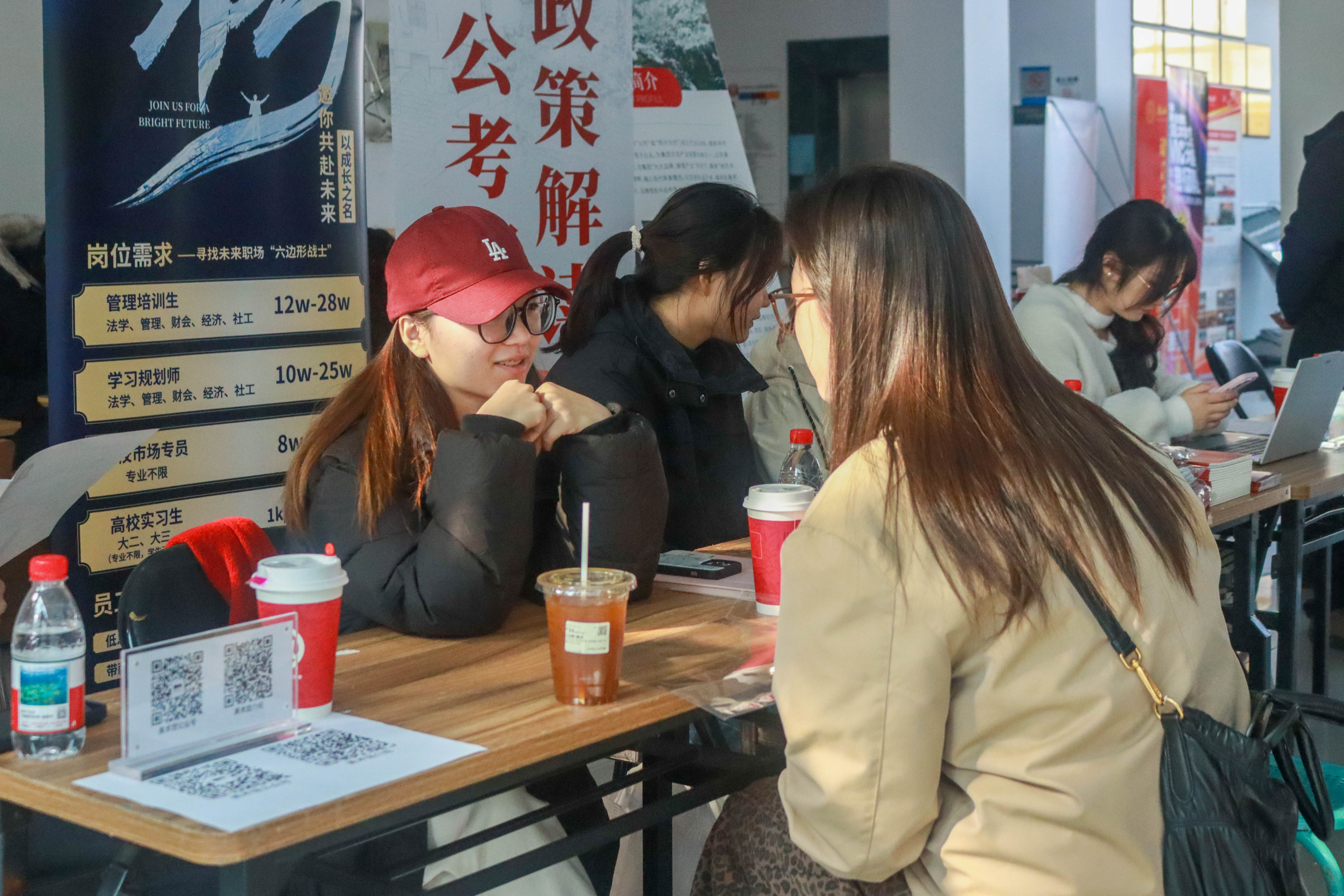 为全面助力毕业生求职,本次招聘会还特别设置“导师面对面”咨询台,由学生处邀请的企业导师高烨现场为毕业生提供一对一咨询,涵盖简历优化、面试指导、职业选择等方面,切实帮助同学们扫清求职障碍、明晰发展方向。现场还增设“我为同学做实事”服务摊位,为毕业生免费拍摄证件照,贴心满足求职材料准备需求。