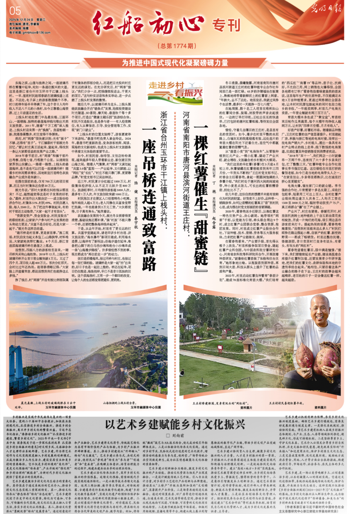 艺术乡建,是一场以美学唤醒乡土、以创意激活乡村、以共创凝聚人心的深刻实践。它通过文化这根纽带,系统性地连接起传统与现代、保护与发展、外来助力与内生动力。这种实践不仅推动《乡村全面振兴规划(2024—2027年)》“文化振兴”的落地,为乡村文化振兴注入鲜活生命力,也为绘就中国式现代化进程中“形神兼备、和美与共”的乡村新画卷贡献着不可或缺的独特力量。