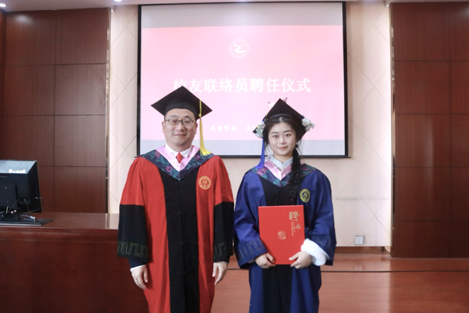 刘向前为校友联络员李传月颁发聘书。刘向前表示,校友是母校宝贵的财富,与母校互为发展共同体,母校始终牵挂校友的终身发展,希望广大毕业生情系母校,共同搭建好校友与母校之间情感共鸣、事业互助的坚固桥梁。