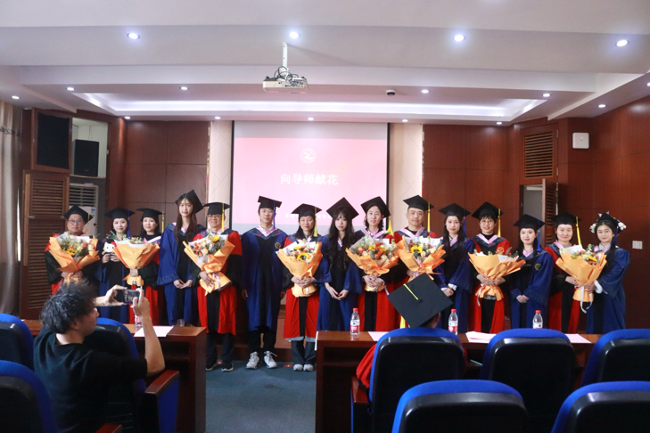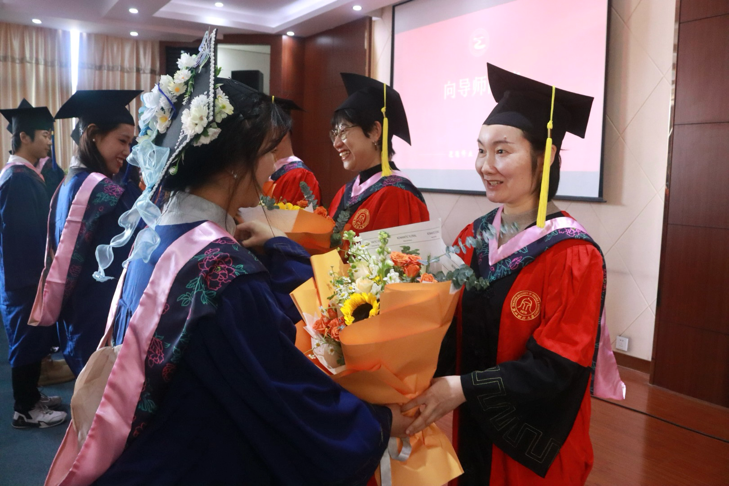 仪式尾声,全体毕业生向导师们敬献鲜花。一束束绽放的鲜花,表达了学子们难以言表的感激与敬意,芬芳之中满载着浓浓的师生情谊。