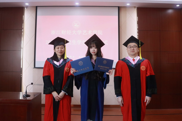 毕业生代表23美术张炜烨动情地表达对母校的眷恋,并将所有人的记忆拉回到那些为理想奋战的深夜。她表示,毕业不是学习的终止,而是带着“浙财艺院”赋予的独特视角与综合素养,去更广阔的天地中进行一场持续一生的“创作”。