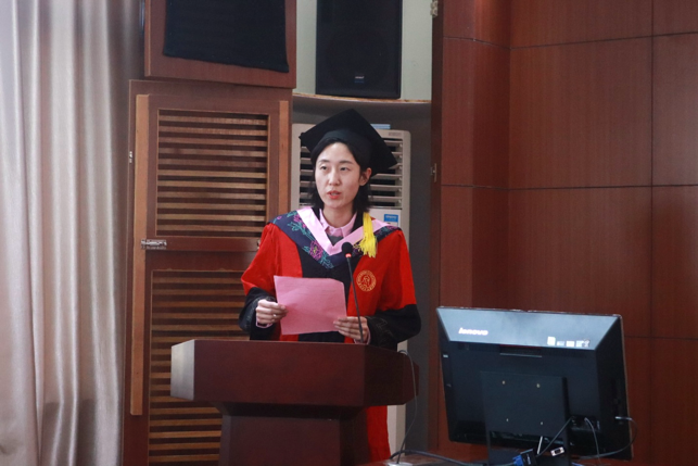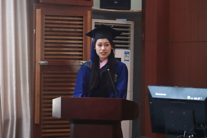在校生代表24美术与书法专业袁羽欣代表全体学弟学妹,向即将远行的学长学姐送上最真挚的祝福。她表示,将接好这一棒,让学院追求卓越的火炬永远明亮。