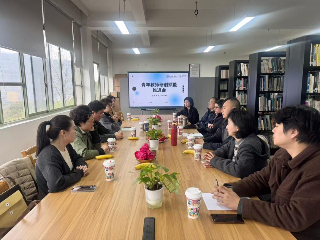 2026年3月24日,艺术学院“青年教师研创赋能推进会”在学院资料室举行。本次会议聚焦青年教师在教学科研与艺术创作中的成长需求,旨在搭建跨学科交流平台,激发创新活力,推动研创深度融合。会议由毛宁副院长(主持工作)主持,学院党委书记刘向前、副书记叶城均,专聘副院长王羽及近六年入职的青年教师杨一隽、吴巩鹏、张樱瀚、王适然、陈韵、李煜华夏、毕夏,以及行政主管倪璧儿出席会议并展开深入交流。