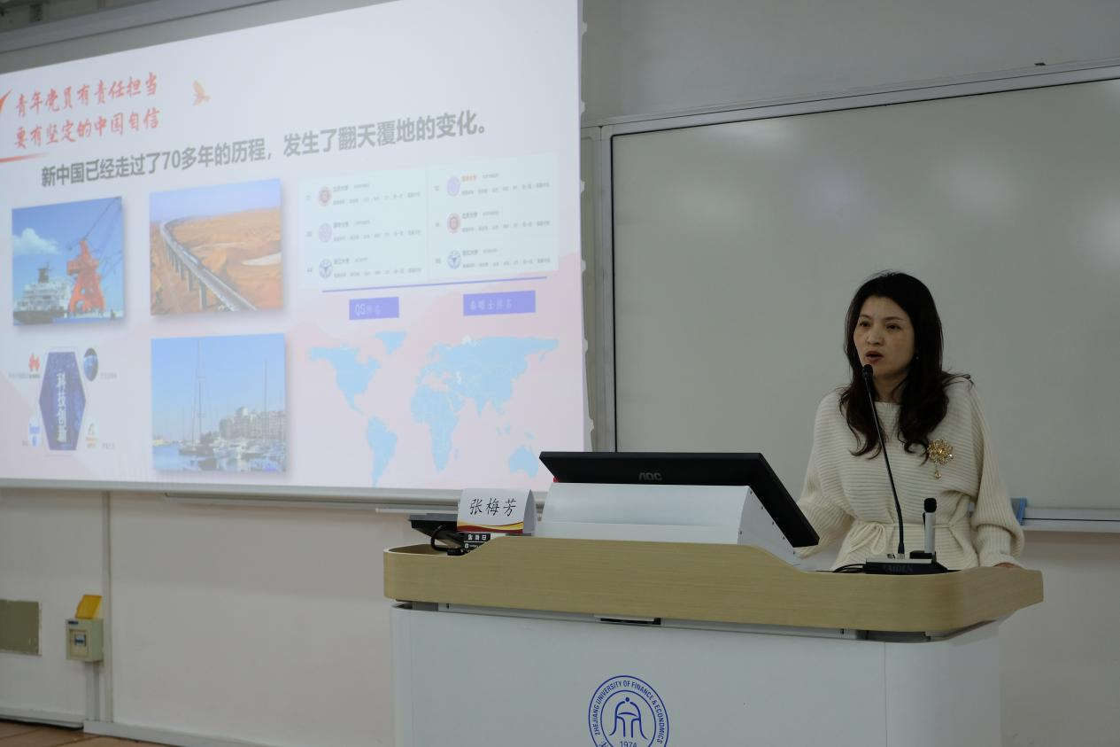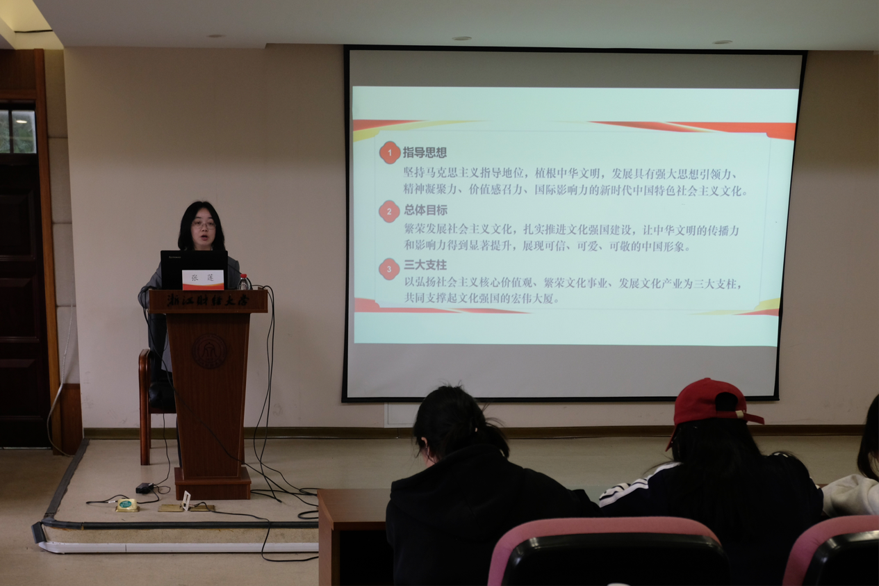 外国语学院党委副书记张莲以“讲好中国故事,践行新时代青年的使命与担当”为题,从跨文化交流的视角切入,要求学员坚定文化自信,并积极尝试用创新的传播方式去讲好中国故事,将个人理想融入国家发展大局。